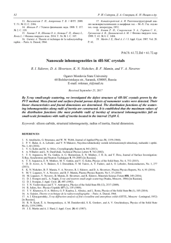 Сидоров Р. И., Скворцов Д. А., Нищев К. Н., Мамин Б. Ф., Неверов В. А. Наноразмерные неоднородности кристаллов 4H-SiC 77