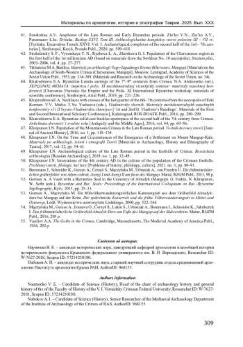 47. Храпунов И.Н. Население горного Крыма в позднеримское время // Вестник древней истории. 2016. № 1. С. 118-134. EDN: VSSNWH