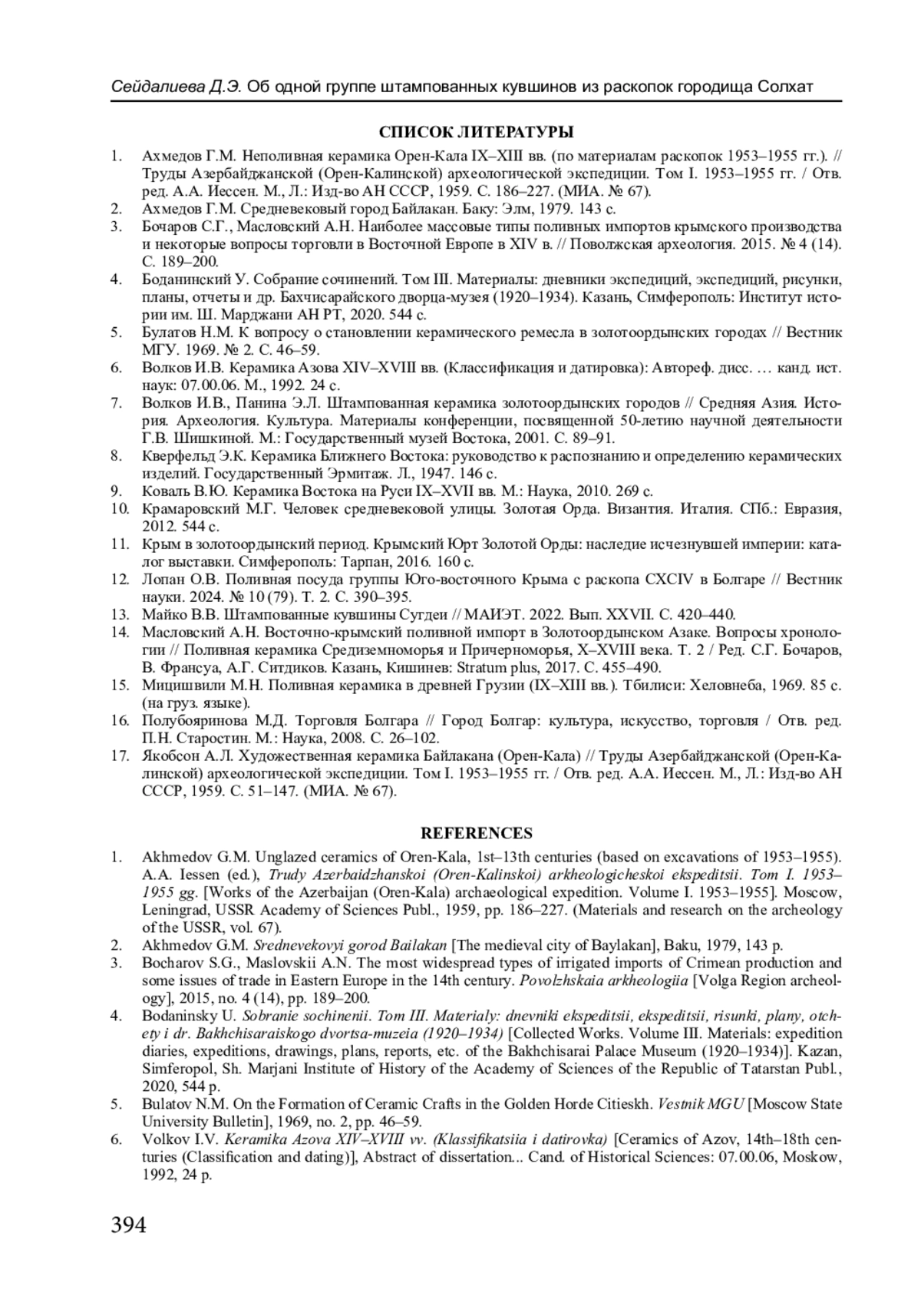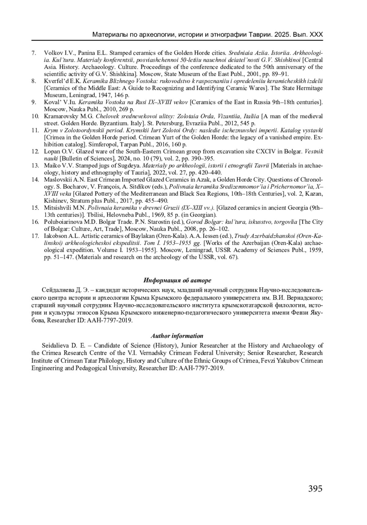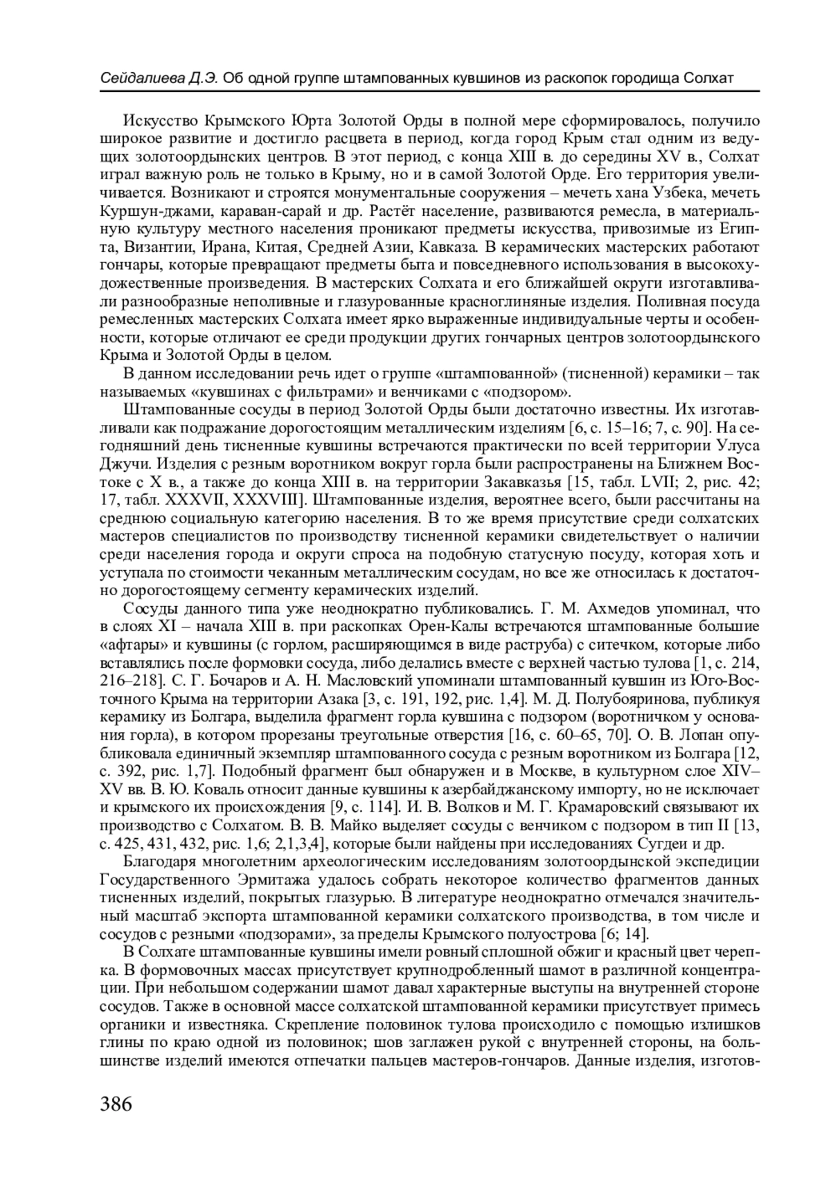 12. Лопан О.В. Поливная посуда группы Юго-восточного Крыма с раскопа CXCIV в Болгаре // Вестник науки. 2024. № 10 (79). Т. 2. С. 390-395. EDN: VSHTZZ