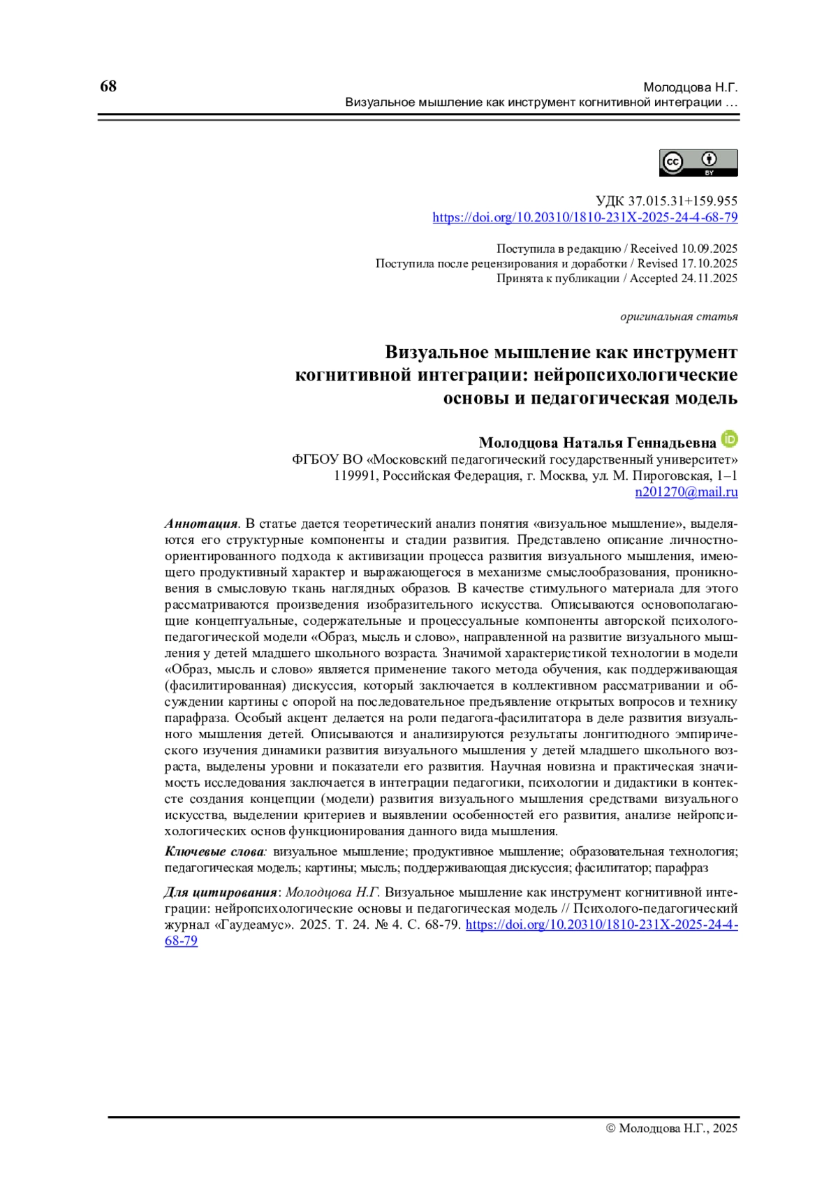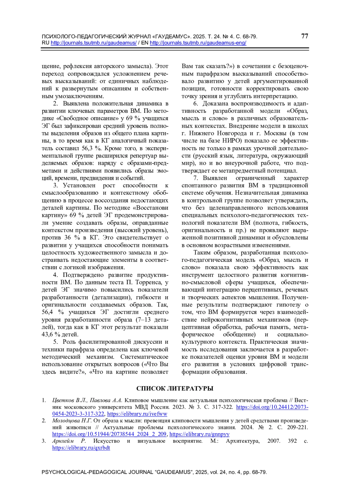 2. Молодцова Н.Г. От образа к мысли: превенция клиповости мышления у детей средствами произведений живописи // Актуальные проблемы психологического знания. 2024. № 2. С. 209-221. ,. DOI: 10.51944/20738544_2024_2_209