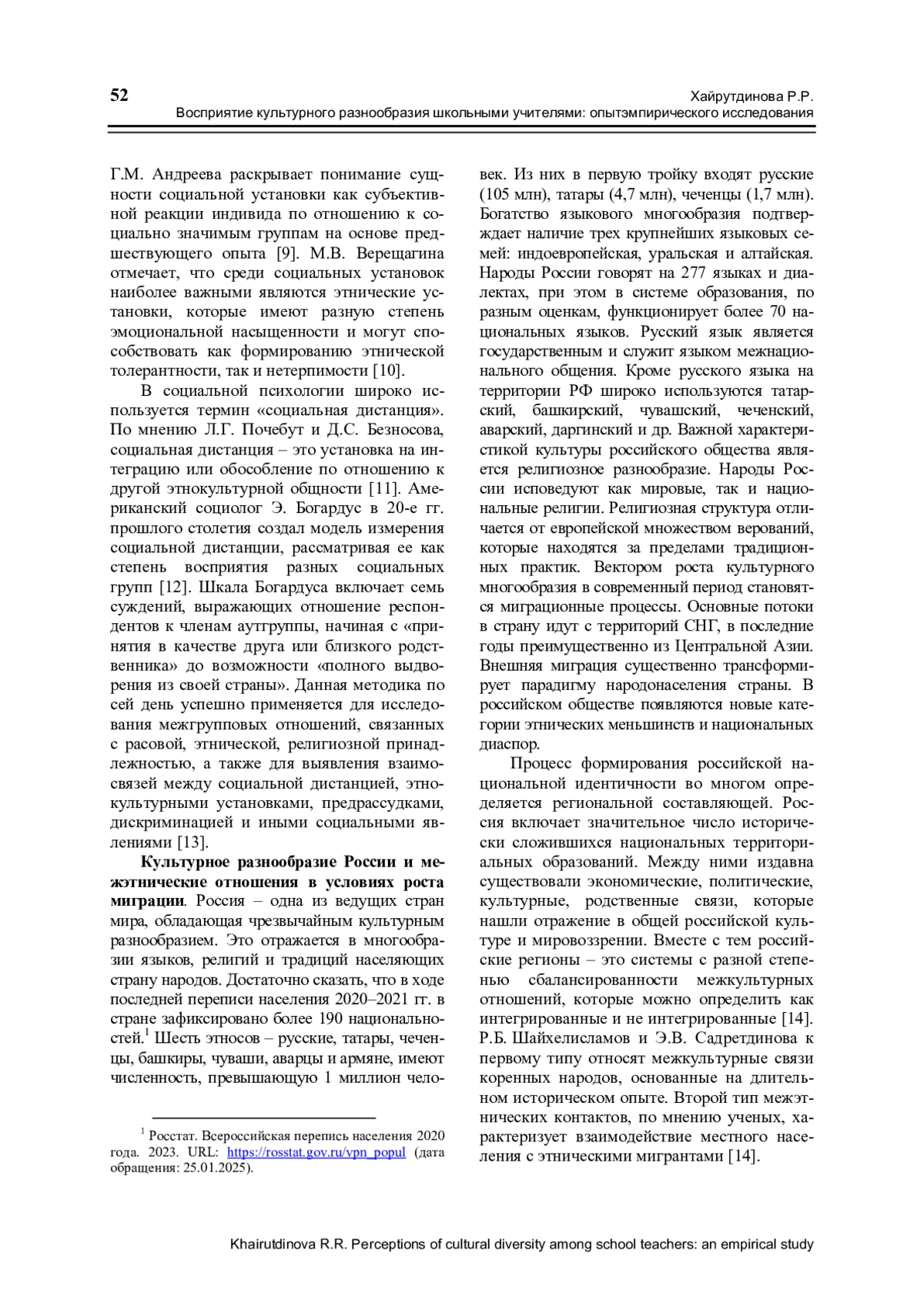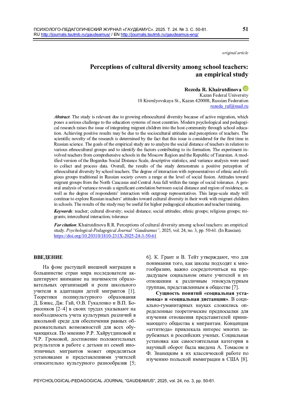 6. Хайрутдинова Р.Р., Громова Ч.Р. Дети мигрантов в российской школе: установки и практики учителей // Образование и саморазвитие. 2024. Т. 19. № 4. С. 242-257. ,. DOI: 10.26907/esd.19.4.18
