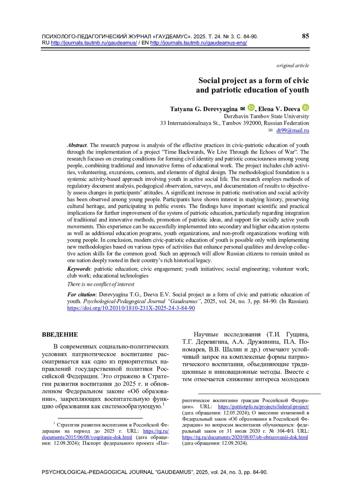 11. Парма Р.В. Продвижение патриотической повестки в социальных медиа среди российской студенческой молодежи // Высшее образование в России. 2024. Т. 33. № 1. С. 44-67. ,. DOI: 10.31992/0869-3617-2024-33-1-44-67