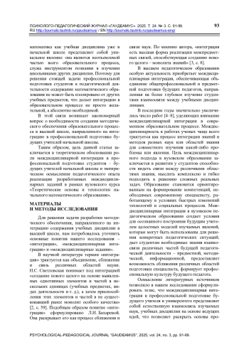 2. Светловская Н.С. Об интеграции как методическом явлении и ее возможностях в начальном обучении // Начальная школа. 1990. № 5. С. 58-61. URL: https://coollib.in/b/747245-zhurnal-nachalnaya-shkola-nachalnaya-shkola-1990-n5/read (дата обращения: 17.08.2025).