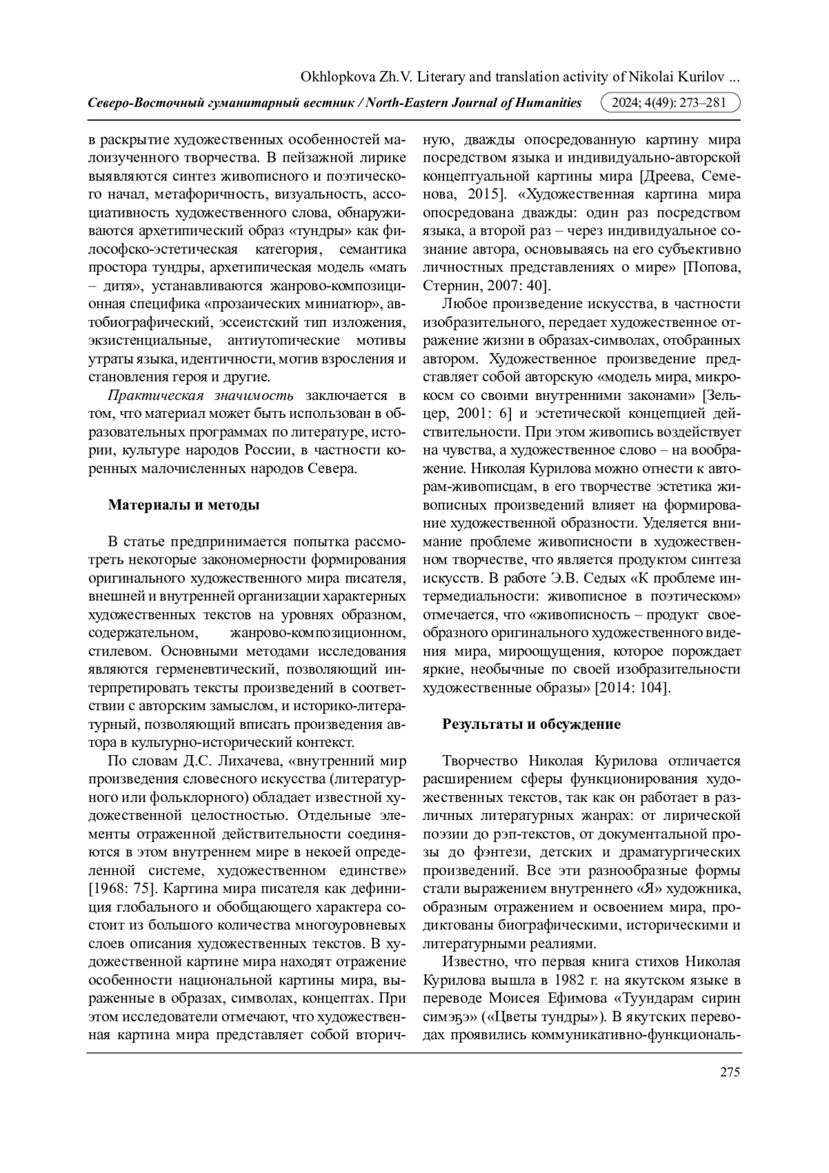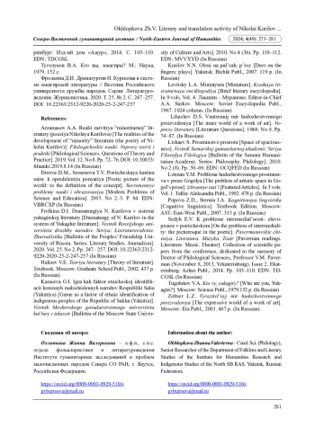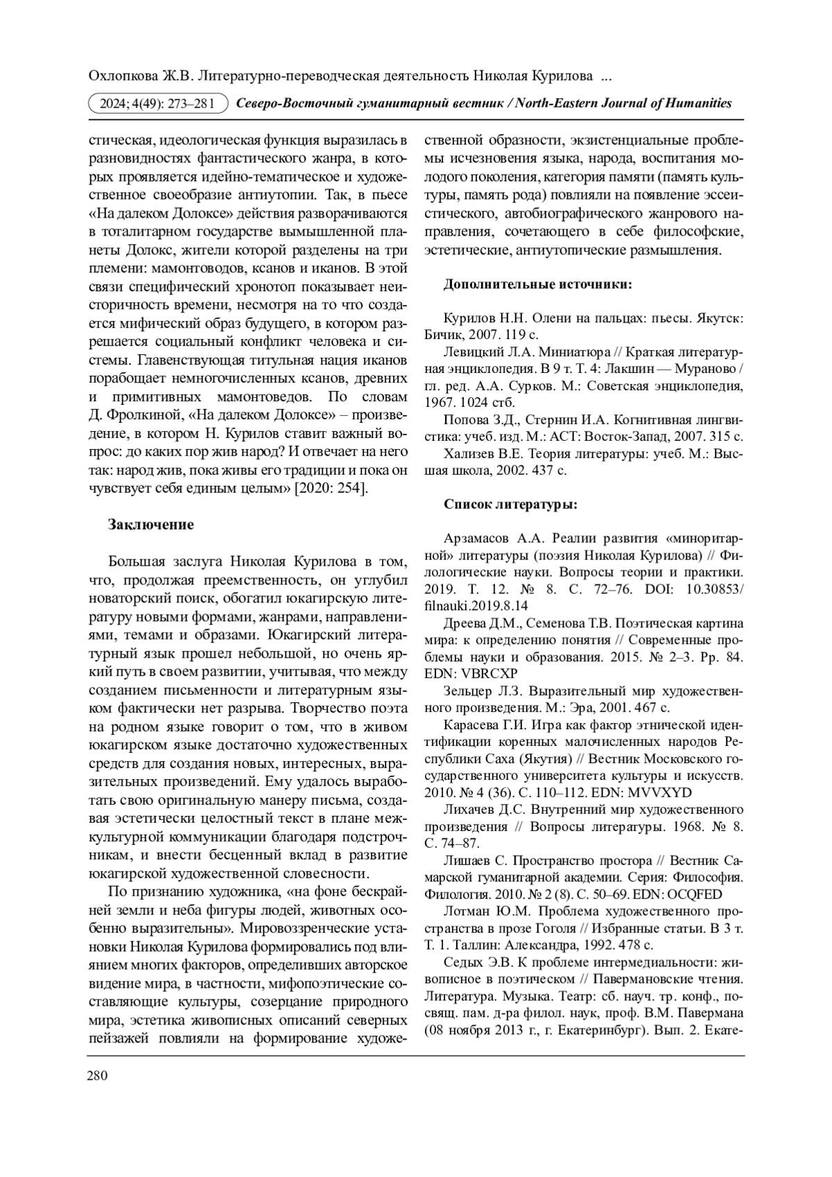 13. Фролкина Д.И. Драматургия Н. Курилова в системе юкагирской литературы // Вестник Российского университета дружбы народов. Серия:Литературоведение. Журналистика. 2020. Т. 25. № 2. С. 247-257. DOI: 10.22363/2312-9220-2020-25-2-247-257 EDN: ZHYPSG