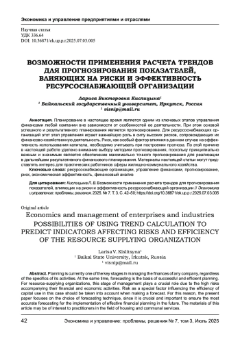 Планирование в настоящее время является одним из ключевых этапов управления финансами любой компании вне зависимости от особенностей ее деятельности. При этом основой успешного и результативного планирования является прогнозирование. Для ресурсоснабжающих организаций этот этап управления играет важнейшую роль в силу высоких рисков, сопровождающих их финансово - хозяйственную деятельность. Риск, как особый фактор влияния в данном случае на эффективность использования капитала, необходимо учитывать при построении прогноза. По этой причине в настоящей работе уделено внимание выбору методики прогнозирования, поскольку принципиально важным и значимым является обеспечение максимально точного прогнозирования для реализации в дальнейшем результативного финансового планирования. Материалы настоящей статьи могут представлять интерес для практических работников сферы жилищно-коммунального хозяйства.