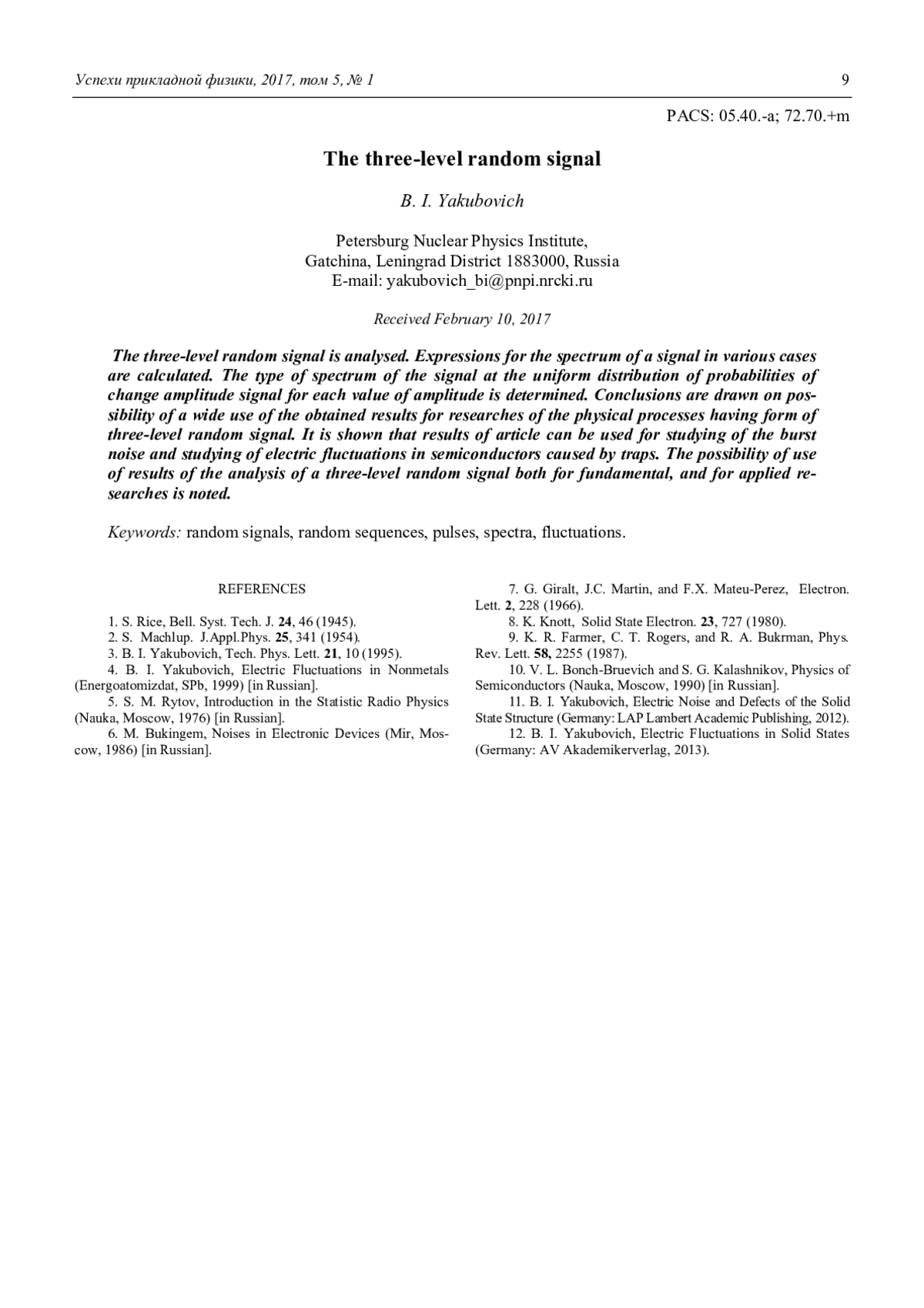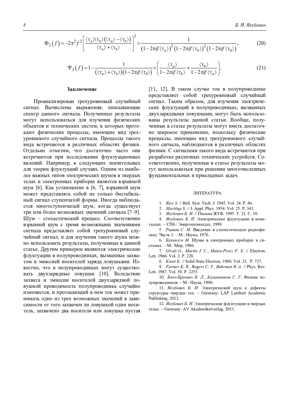 12. Якубович Б. И. Электрические флуктуации в твердых телах. – Germany: AV Akademikerverlag, 2013.