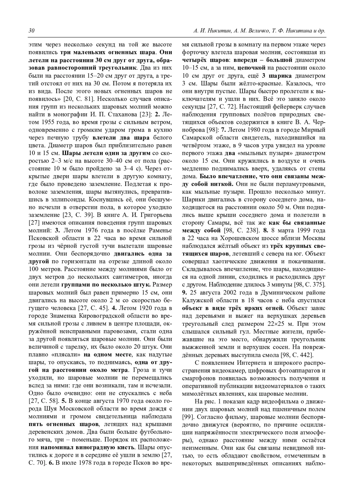 30. Bychkov V. L., Nikitin A. I., Dijkhuis G. C. Ball Lightning Investigations. In: The Atmosphere and Ionosphere. Dynamics, Processes and Monitoring. Eds. V. L. Bychkov, G. V. Golubkov, A. I. Nikitin. Dordrecht: Springer, 2010. P. 201–373.