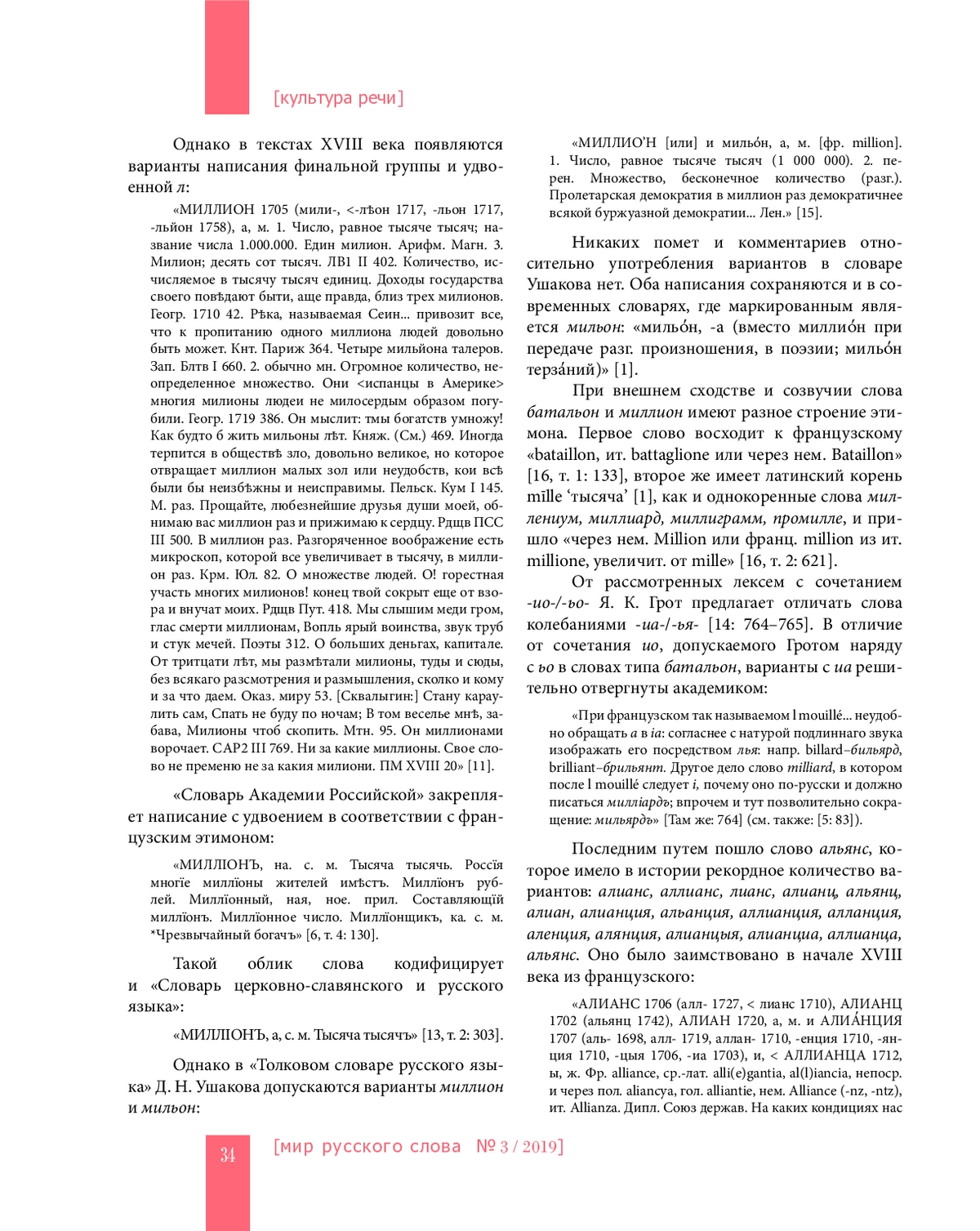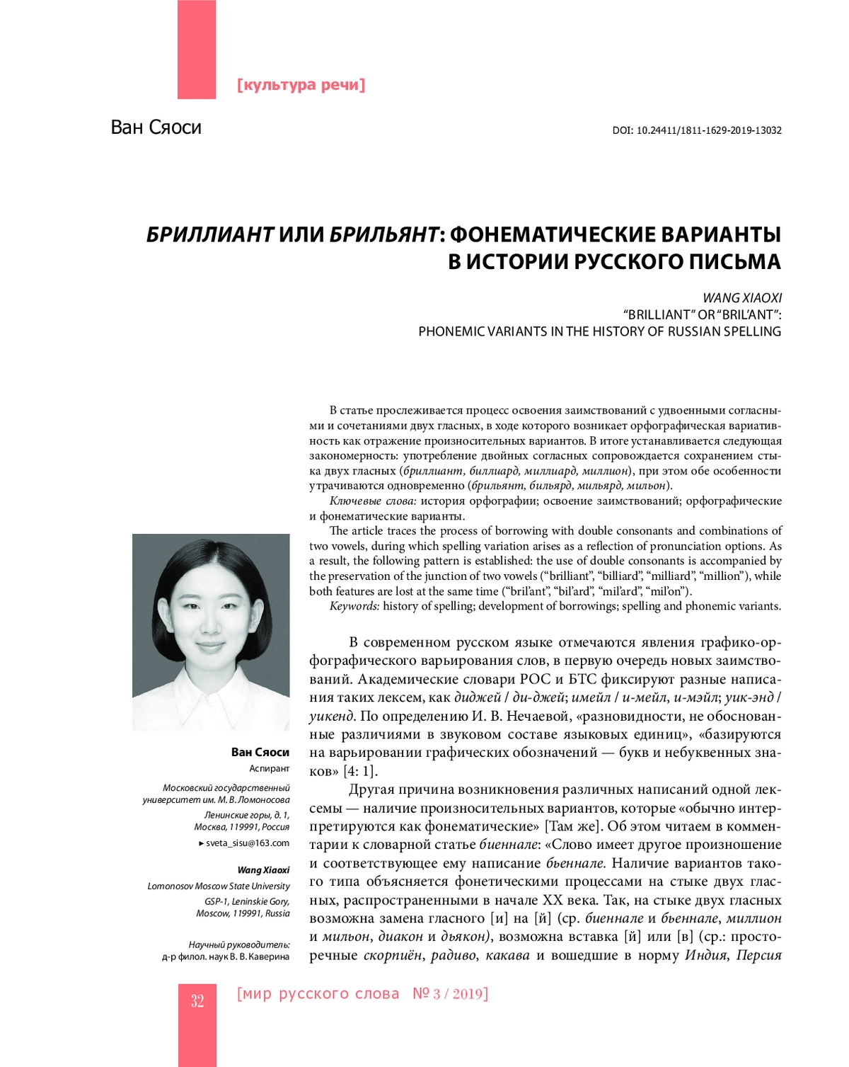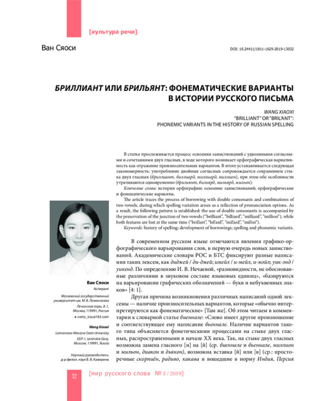 В статье прослеживается процесс освоения заимствований с удвоенными согласными и сочетаниями двух гласных, в ходе которого возникает орфографическая вариативность как отражение произносительных вариантов. В итоге устанавливается следующая закономерность: употребление двойных согласных сопровождается сохранением стыка двух гласных (бриллиант, биллиард, миллиард, миллион), при этом обе особенности утрачиваются одновременно (брильянт, бильярд, мильярд, мильон)