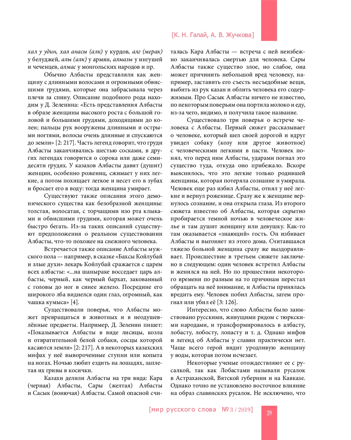 5. Наумова Ю. Н. Демон албасты в казахских поверьях: особенности визуализации // Визуальное и вербальное в народной культуре: Тезисы и матер. Междунар. школы-конференции. М.; Переславль-Залесский, 2013. С. 205-209. EDN: RGYCUZ