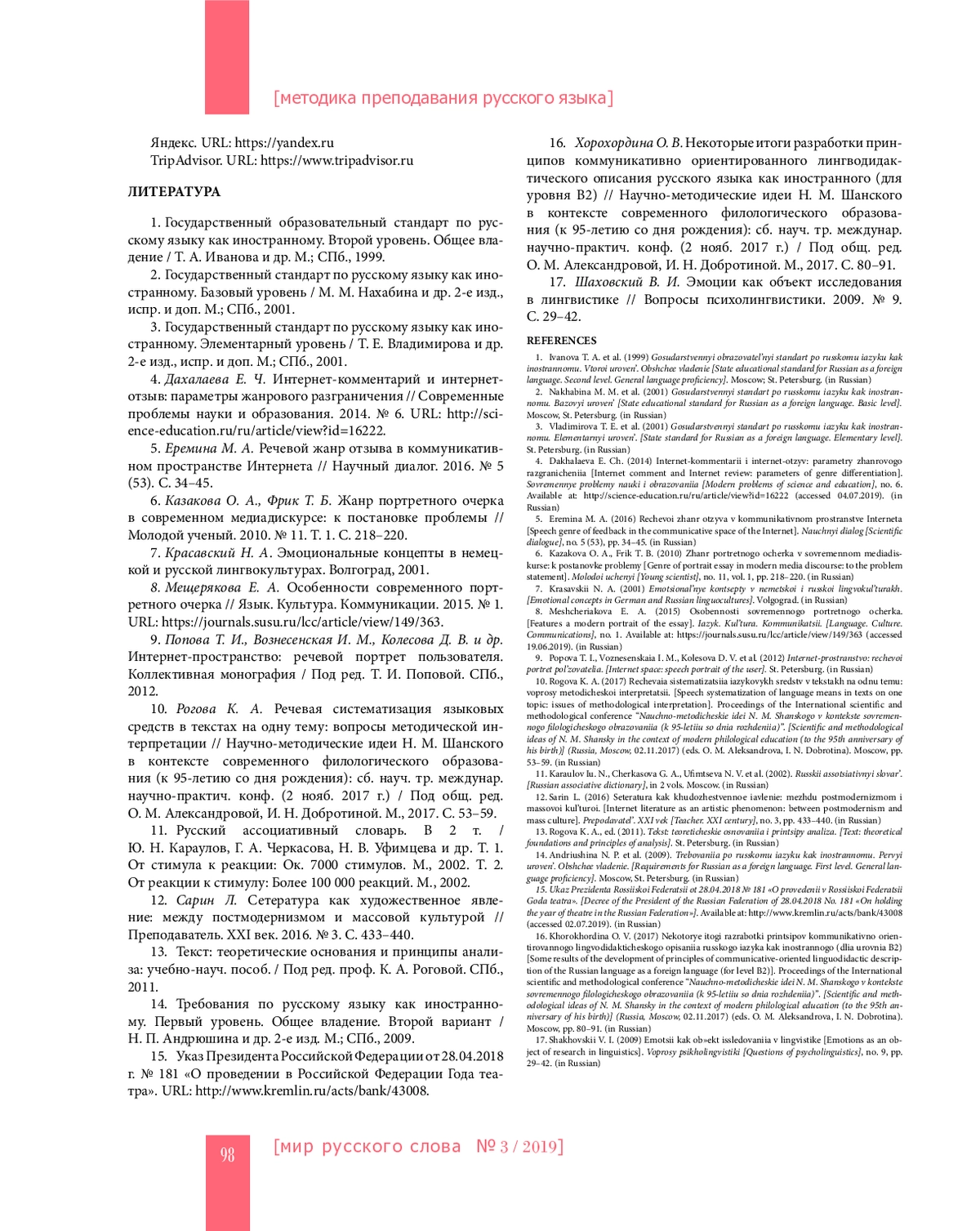 16. Хорохордина О. В. Некоторые итоги разработки принципов коммуникативно ориентированного лингводидактического описания русского языка как иностранного (для уровня В2) // Научно-методические идеи Н. М. Шанского в контексте современного филологического образования (к 95-летию со дня рождения): сб. науч. тр. междунар. научно-практич. конф. (2 нояб. 2017 г.) / Под общ. ред. О. М. Александровой, И. Н. Добротиной. М., 2017. С. 80-91. EDN: YMAYCQ