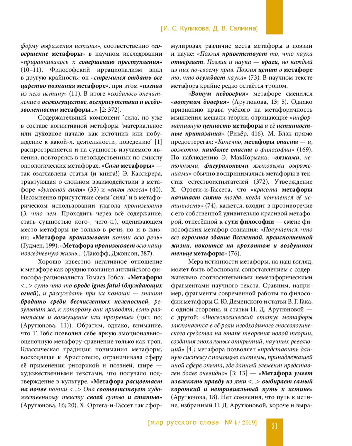 3. Гак В. Метафора: универсальное и специфическое // Метафора в языке и тексте: монография / отв. ред В. Н. Телия. М.: Наука, 1988. С. 11-25.