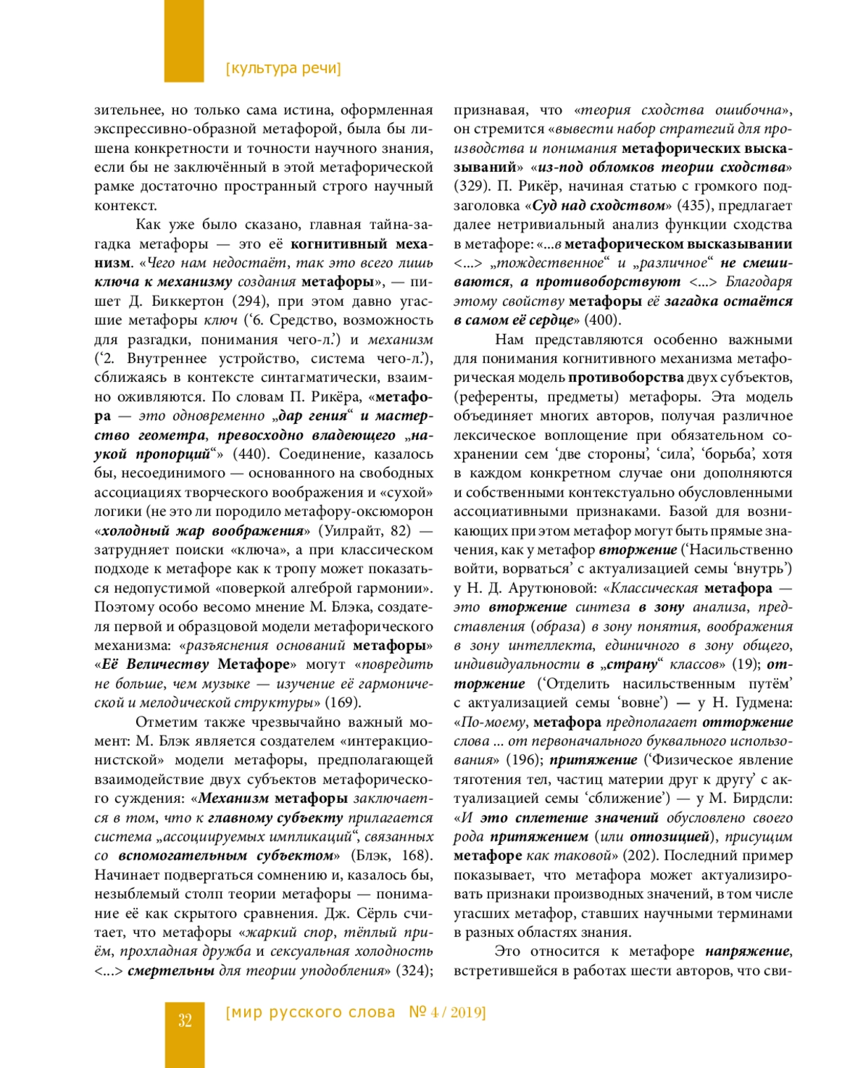 Предмет исследования в данной статье — метафорический способ представления концепта «метафора» в тематически целостной совокупности текстов — сборнике «Теория метафоры» (1990). Методами контекстуального и компонентного анализа была выявлена роль когнитивных метафор в формировании многоаспектного концептуального содержания термина метафора