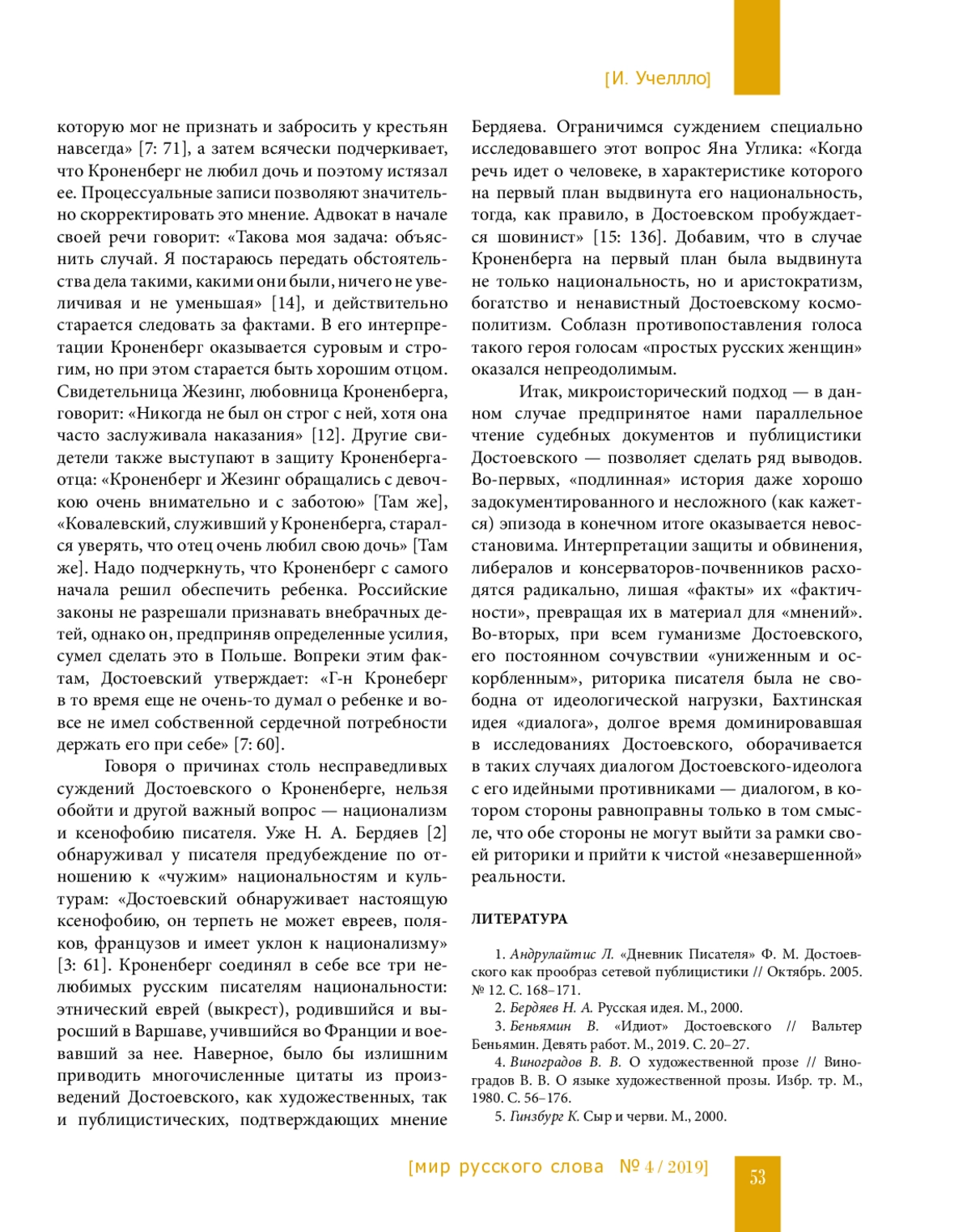 15. Углик Я. Образ поляков в романах и публицистике Ф. М. Достоевского // Toronto Slavic Quarterly. 2011. № 37. С. 136-149.