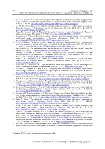 9. Новикова М.А., Реан А.А. Влияние школьного климата на возникновение травли: отечественный и зарубежный опыт исследования // Вопросы образования. 2019. № 2. С. 78-97. ,. DOI: 10.17323/1814-9545-2019-2-78-97