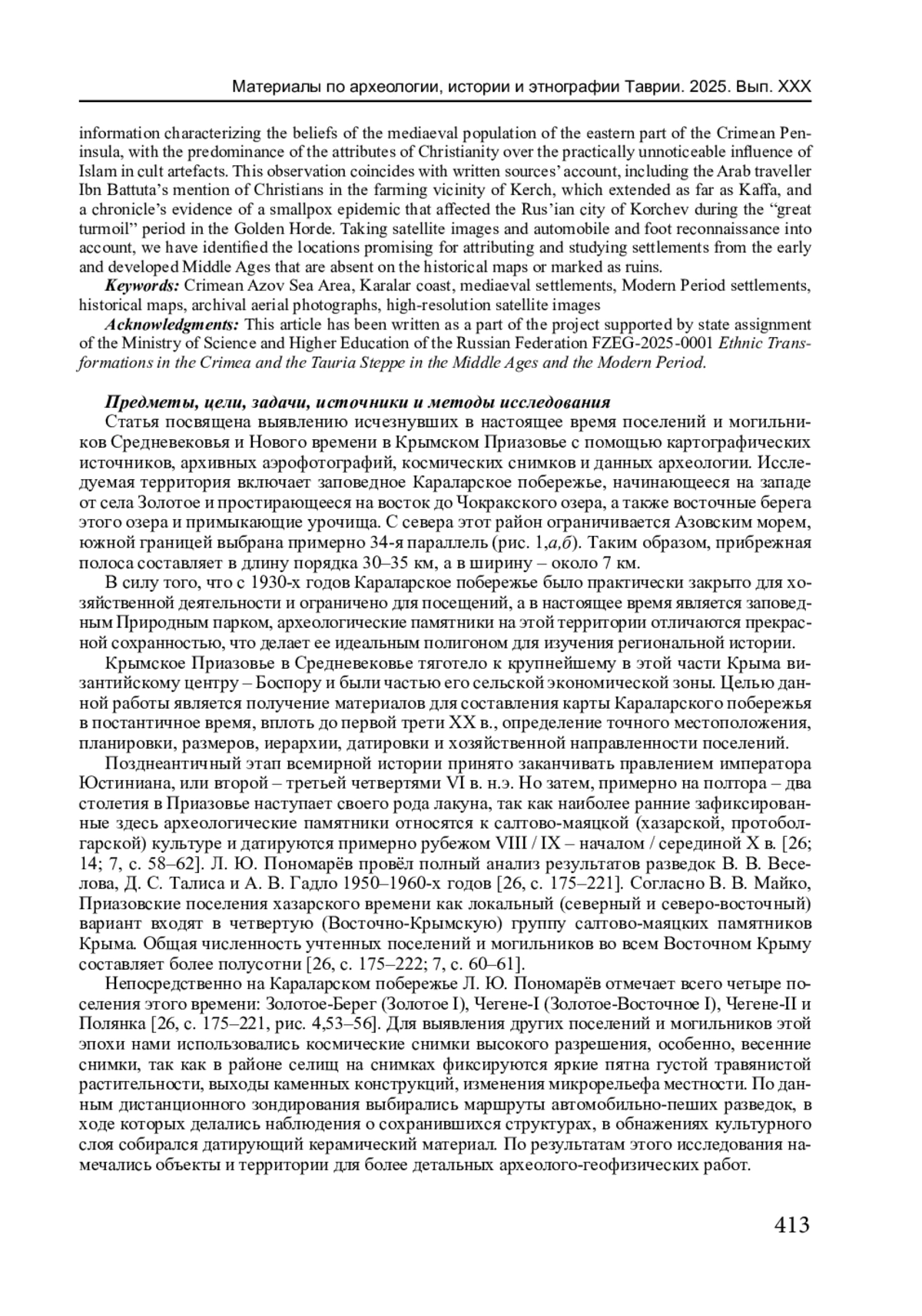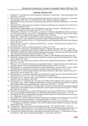 26. Пономарёв Л.Ю. Салтово-маяцкие памятники центральной и северной части Керченского полуострова (материалы к археологической карте) // Хазарский альманах. М., 2020. Т. 17. С. 175-227.