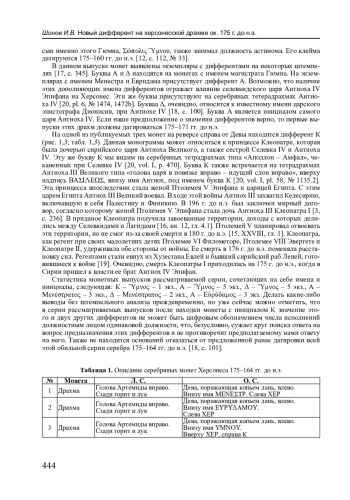 18. Шонов И.В. Серебряные монетные выпуски Херсонеса Таврического 178-164 гг. до н.э. // История и археология Крыма. 2019. Вып. X. С. 97-104. EDN: PHEQOA