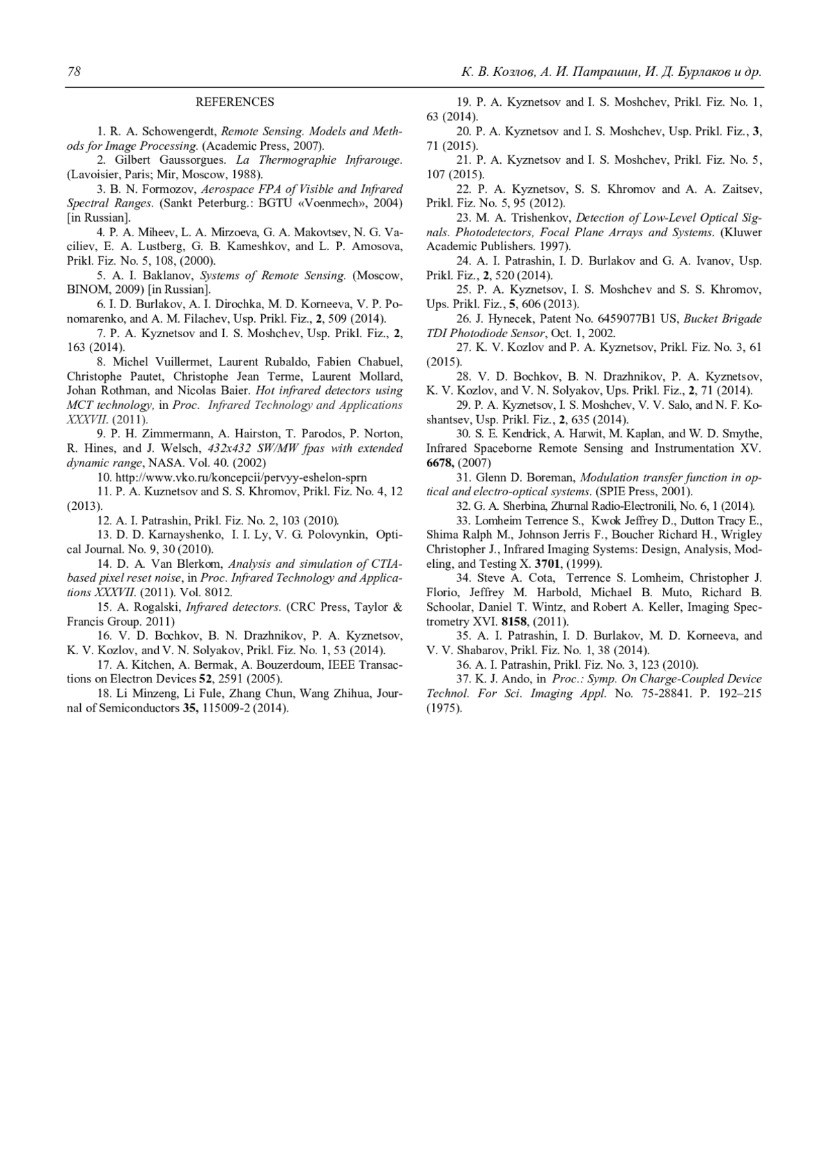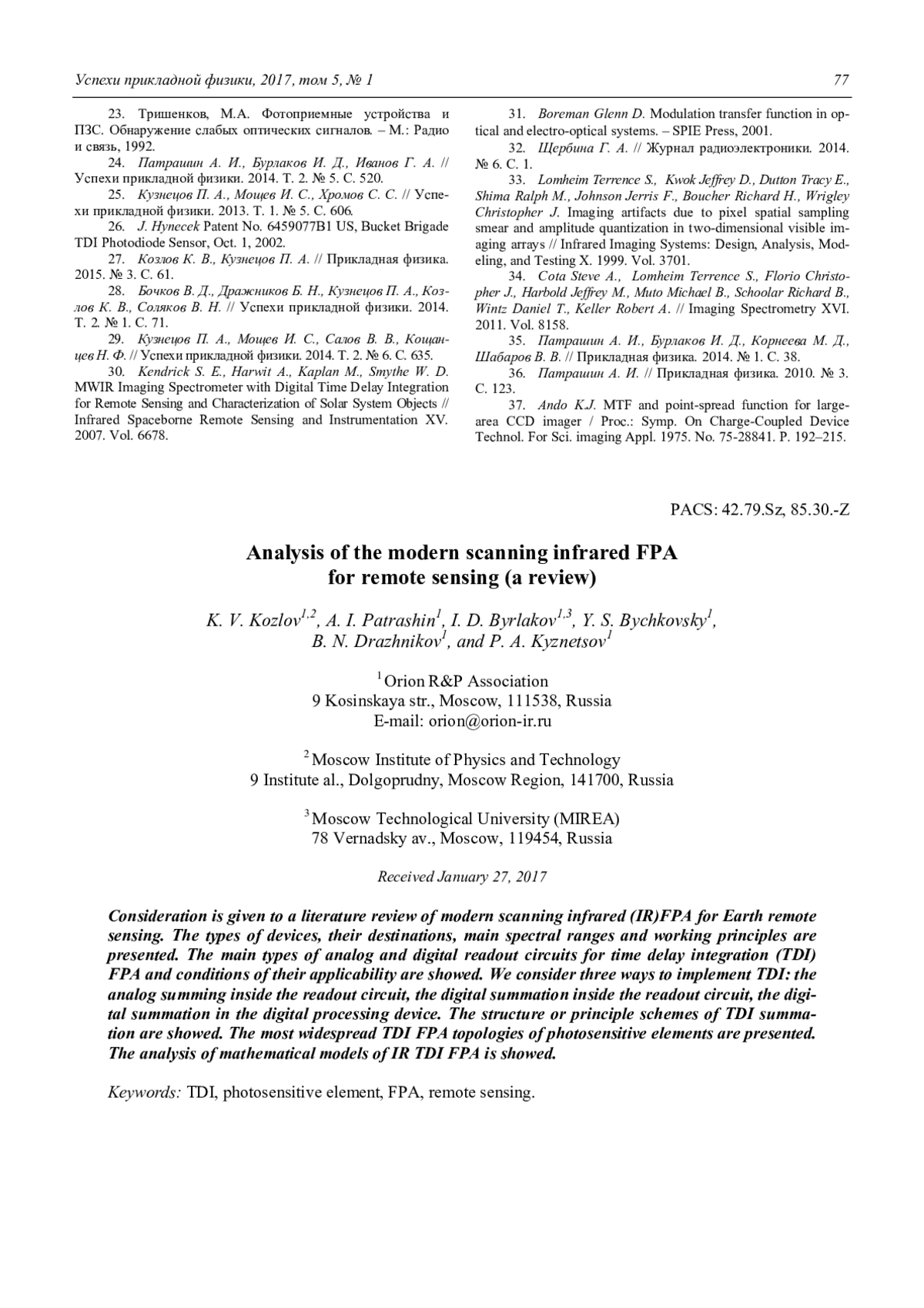 K. V. Kozlov, A. I. Patrashin, I. D. Byrlakov, Y. S. Bychkovsky, B. N. Drazhnikov, and P. A. Kyznetsov Analysis of the modern scanning infrared FPA for remote sensing (a review) 63