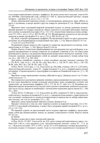 5. Бехтер А.П., Ильина Ю.И. Граффити и дипинти из раскопок Е. И. Леви и А.Н. Карасева. 6. Частновладельческие граффити // Вестник древней истории. 2024. № 4. С. 933-955. EDN: MEKVKI