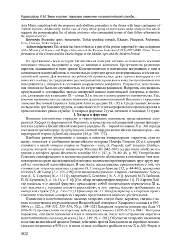 22. Науменко В.Е. К вопросу о характере византийско-хазарских отношений в конце VIII - середине IX вв. // Проблемы истории, филологии, культуры. 2002. Вып. XII. С. 544-568. EDN: KGBVRJ