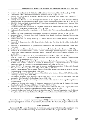 60. Kennedy H.N., Haldon J.F. The Arab-Byzantine Frontier in the Eighth and Ninth Centuries: Military Organisation and Society in the Borderlands // Зборник радова Византолошког института. 1980. Т. XIX. P. 79-116.