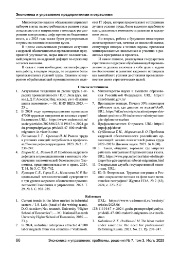 3. Голенкова З. Т., Орехова И. М. Рынок труда в условиях санкций: потребность в профессиях//Россия реформирующаяся. 2023. № 21. С.230-247. EDN: IFWEMR