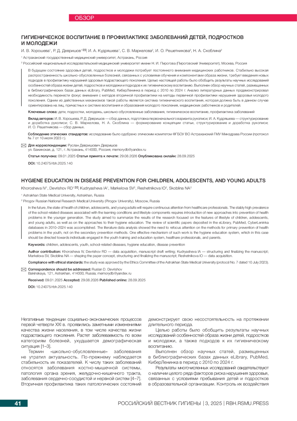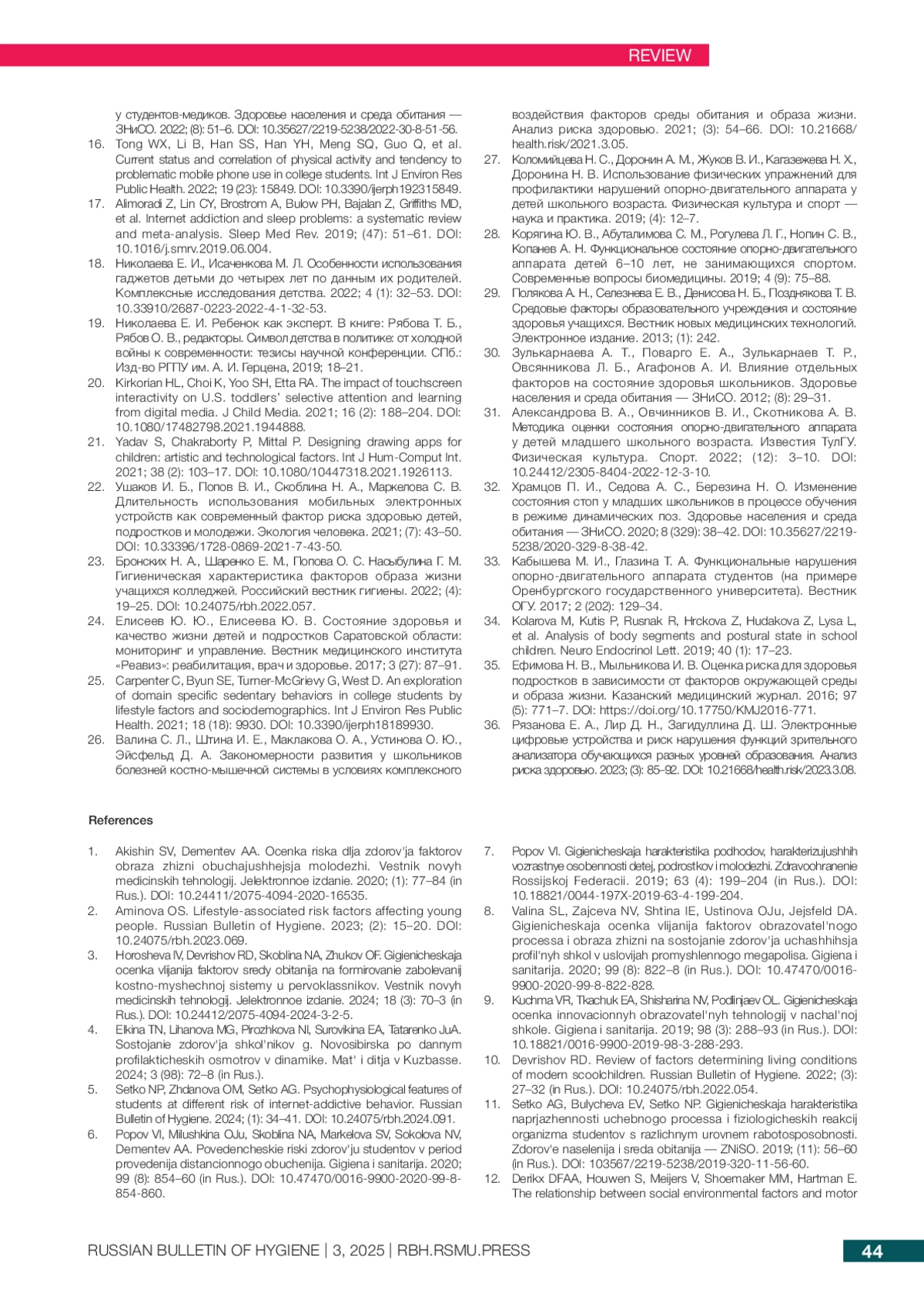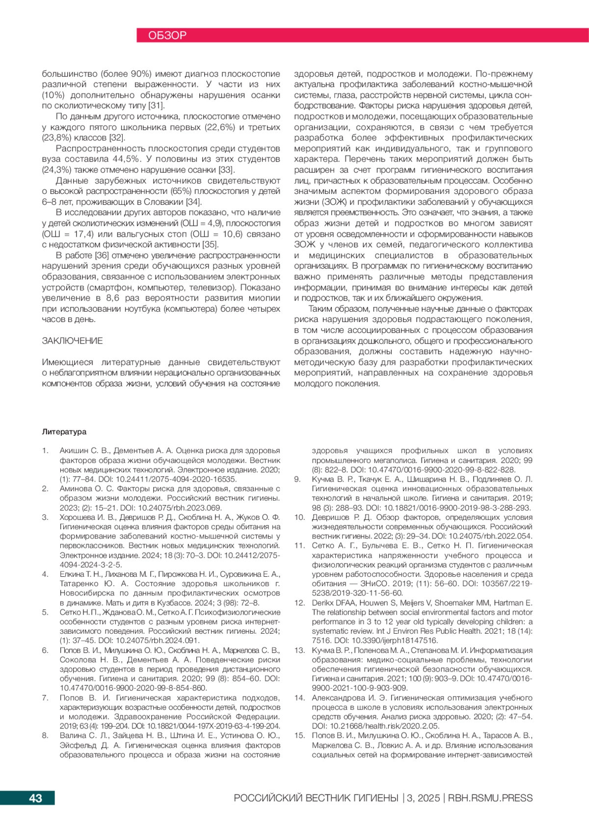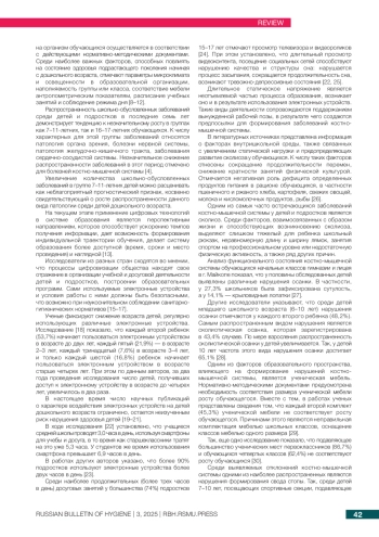 10. Девришов Р Д. Обзор факторов, определяющих условия жизнедеятельности современных обучающихся. Российский вестник гигиены. 2022; (3): 29-34. DOI: 10.24075/rbh.2022.054