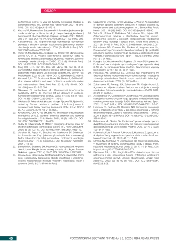 23. Бронских Н. А., Шаренко Е. М., Попова О. С. Насыбулина Г М. Гигиеническая характеристика факторов образа жизни учащихся колледжей. Российский вестник гигиены. 2022; (4): 19-25. DOI: 10.24075/rbh.2022.057