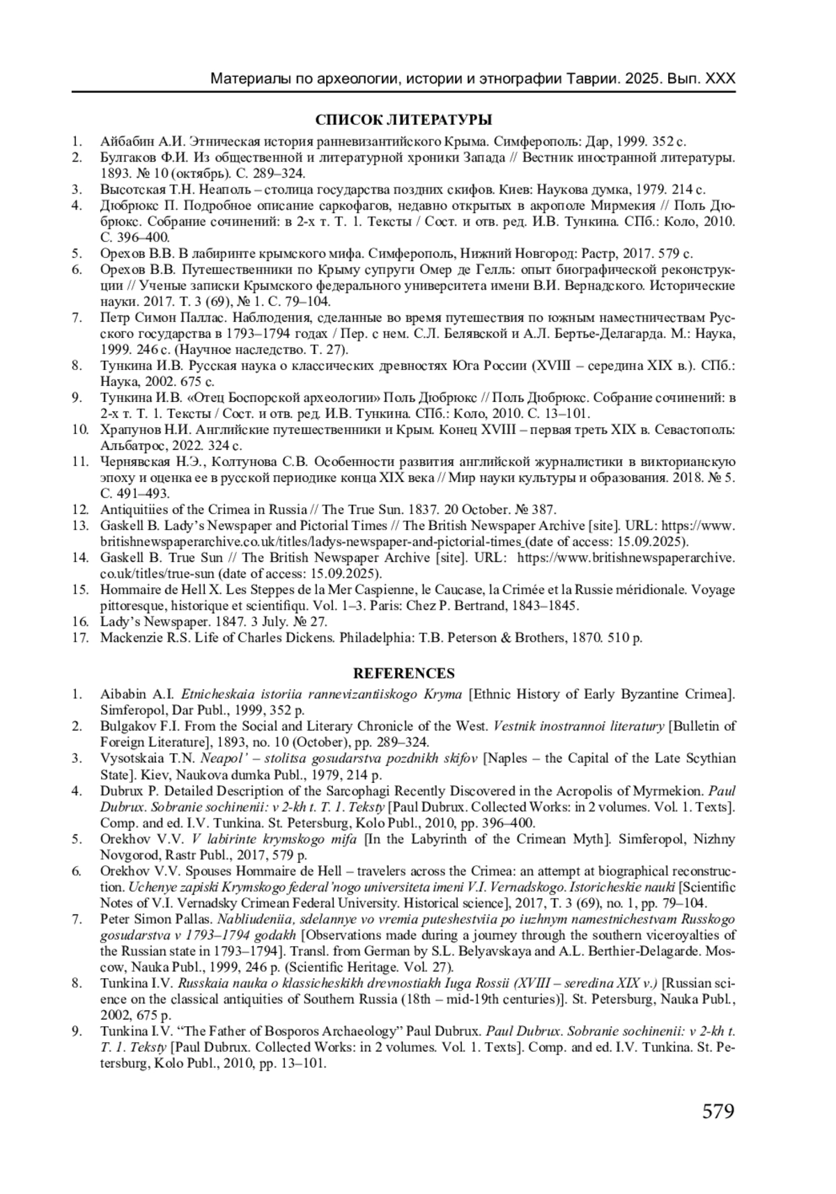 9. Тункина И.В. “Отец Боспорской археологии” Поль Дюбрюкс // Поль Дюбрюкс. Собрание сочинений: в 2-х т. Т. 1. Тексты / Сост. и отв. ред. И.В. Тункина. СПб.: Коло, 2010. С. 13-101. EDN: SIQOQR
