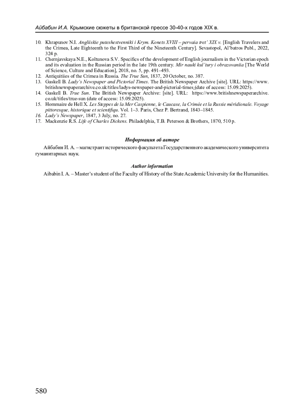 10. Храпунов Н.И. Английские путешественники и Крым. Конец XVIII - первая треть XIX в. Севастополь: Альбатрос, 2022. 324 с. EDN: YWVZIE