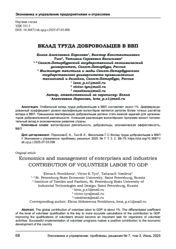 Глобальный вклад труда добровольцев в ВВП составляет около 1%. Дифференцированный коэффициент уровня квалификации волонтёров является залогом более точных расчётов вклада в ВВП. Повышение квалификации добровольцев должно стать важной задачей для организаторов добровольческой деятельности. Успешная реализация волонтёрских программ вносит положительный вклад в экономическое развитие страны.