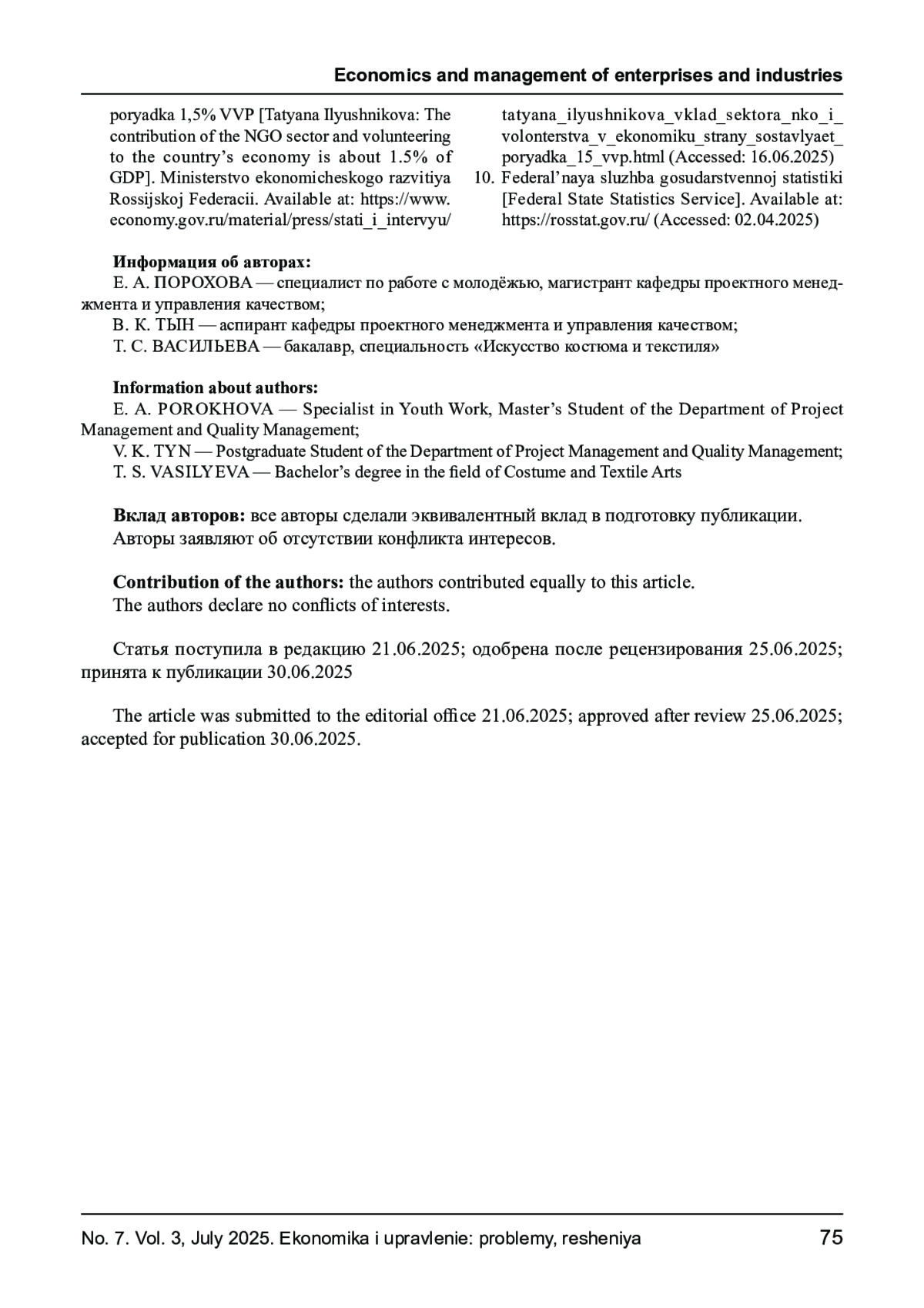 9. Татьяна Илюшникова: вклад сектора НКО и волонтерства в экономику страны составляет порядка 1,5% ВВП [Электронный ресурс] // Министерство экономического развития Российской Федерации. URL: https://www.economy.gov.ru/material/press/stati_i_intervyu/tatyana_ilyushnikova_vklad_sektora_nko_i_volonterstva_v_ekonomiku_strany_sostavlyaet_poryadka_15_vvp.html (дата обращения:16.06.2025).
