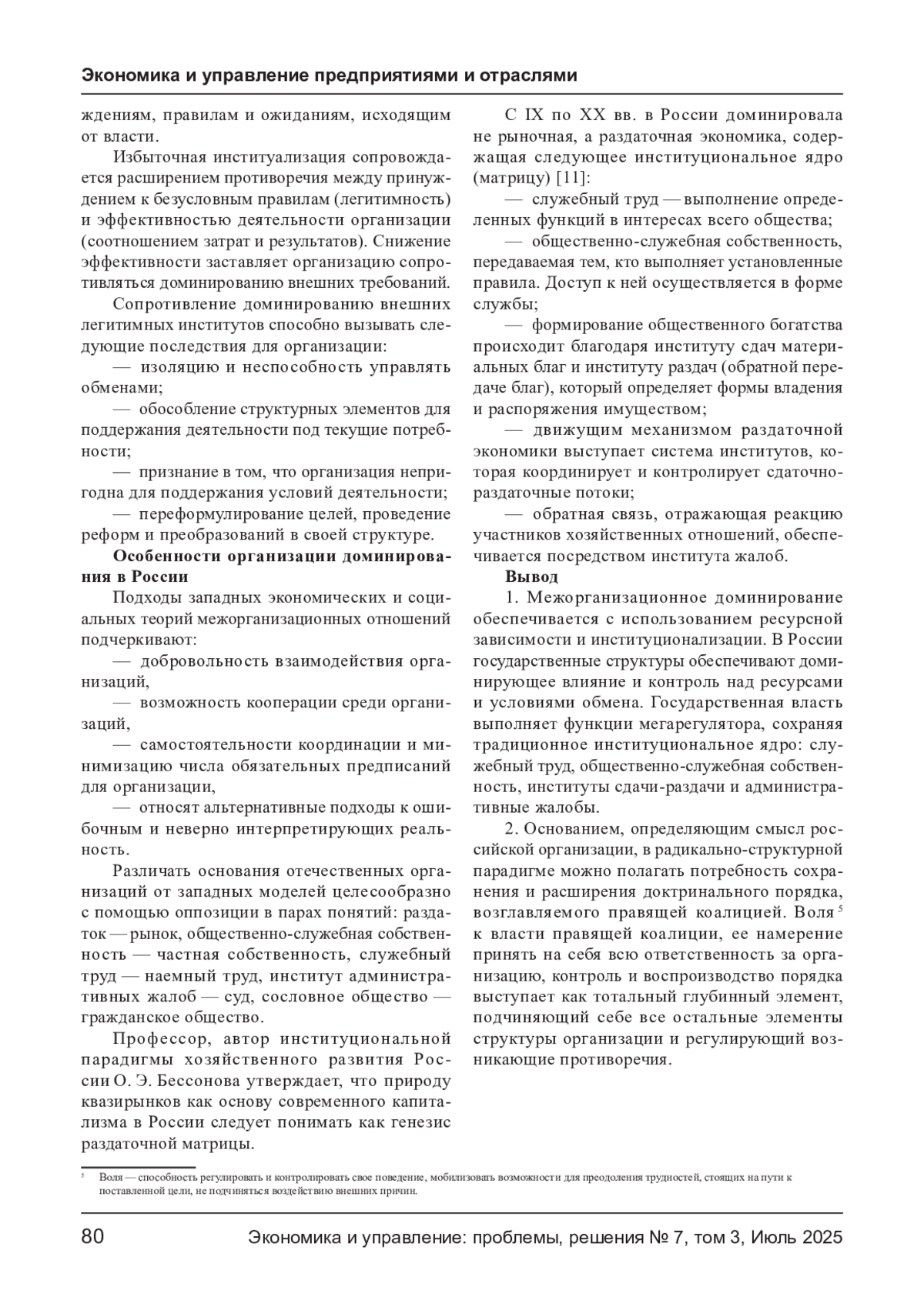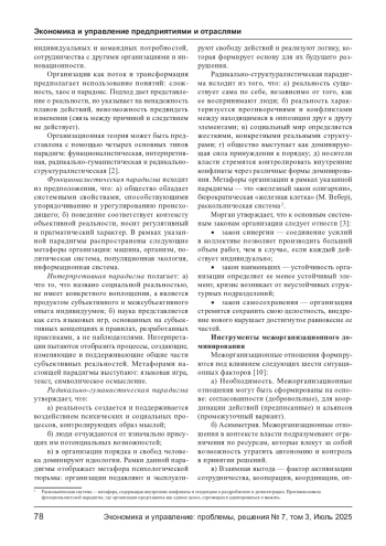 В данной статье рассмотрена целесообразность отображения отечественной организации с использованием радикально- структуралистической парадигмы, основополагающим аспектом которой является стремление к сохранению и укреплению установленного порядка, возглавляемого правящей коалицией. Автором указаны инструменты межорганизационного доминирования - ресурсная зависимость и институализация, сделан акцент на том, что учреждения играют ключевую роль, оказывая значительное влияние и контролируя ресурсы и условия обмена, а также отмечены особенности организации и доминирования в российской хозяйственной практике.