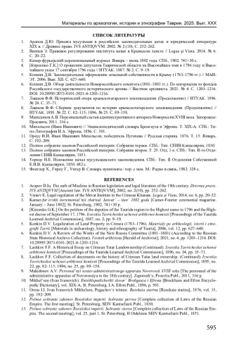 7. Лашков Ф.Ф. Исторический очерк крымско-татарского землевладения. (Продолжение) // Известия Таврической ученой архивной комиссии. 1896. № 24. С. 35-71.