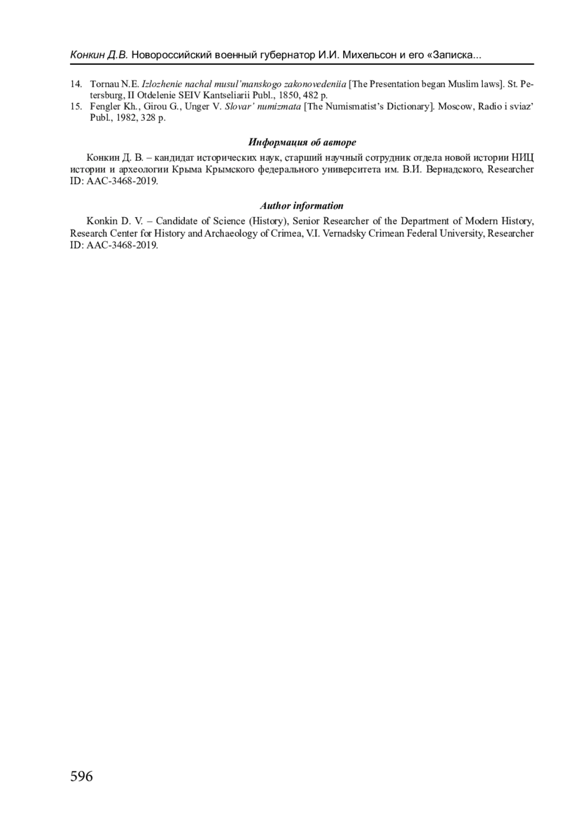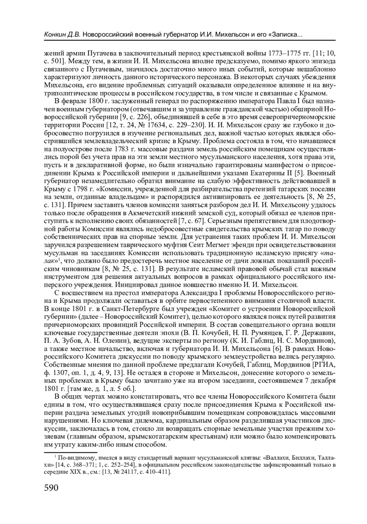 5. Конкин Д.В. Законодательное оформление земельной собственности в Крыму (1783-1796 гг.) // Материалы по археологии, истории и этнографии Таврии. 2006. Вып. XII. С. 627-640. EDN: TAZZAP