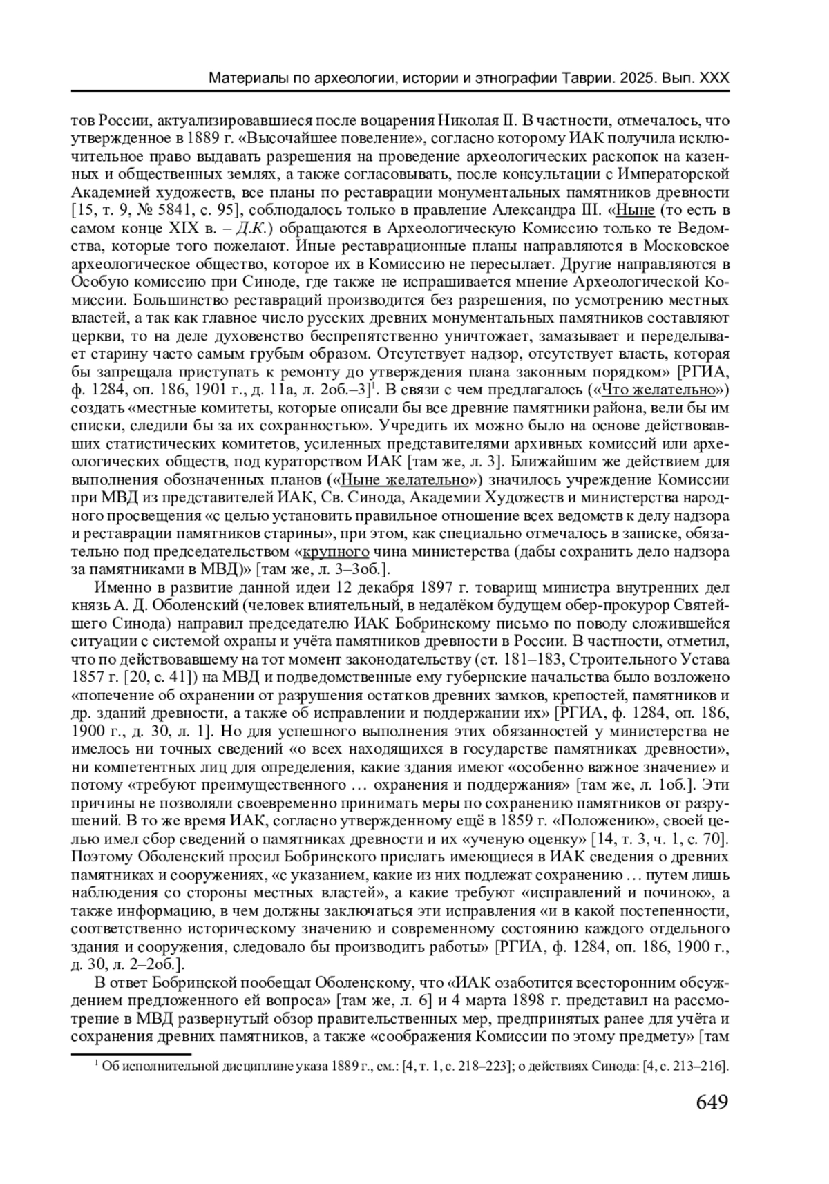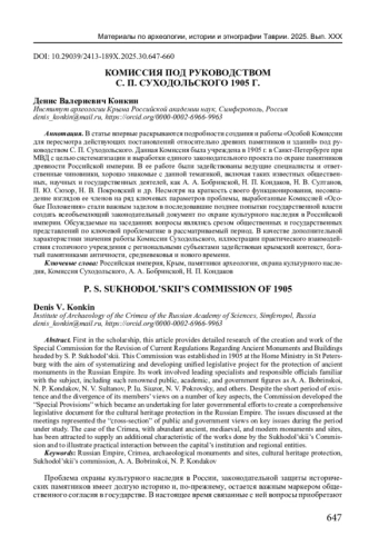 В качестве дополнительной характеристики значения работы Комиссии Суходольского, иллюстрации практического взаимодействия столичного учреждения с региональными субъектами задействован крымский контекст, богатый памятниками античности, средневековья и нового времени.