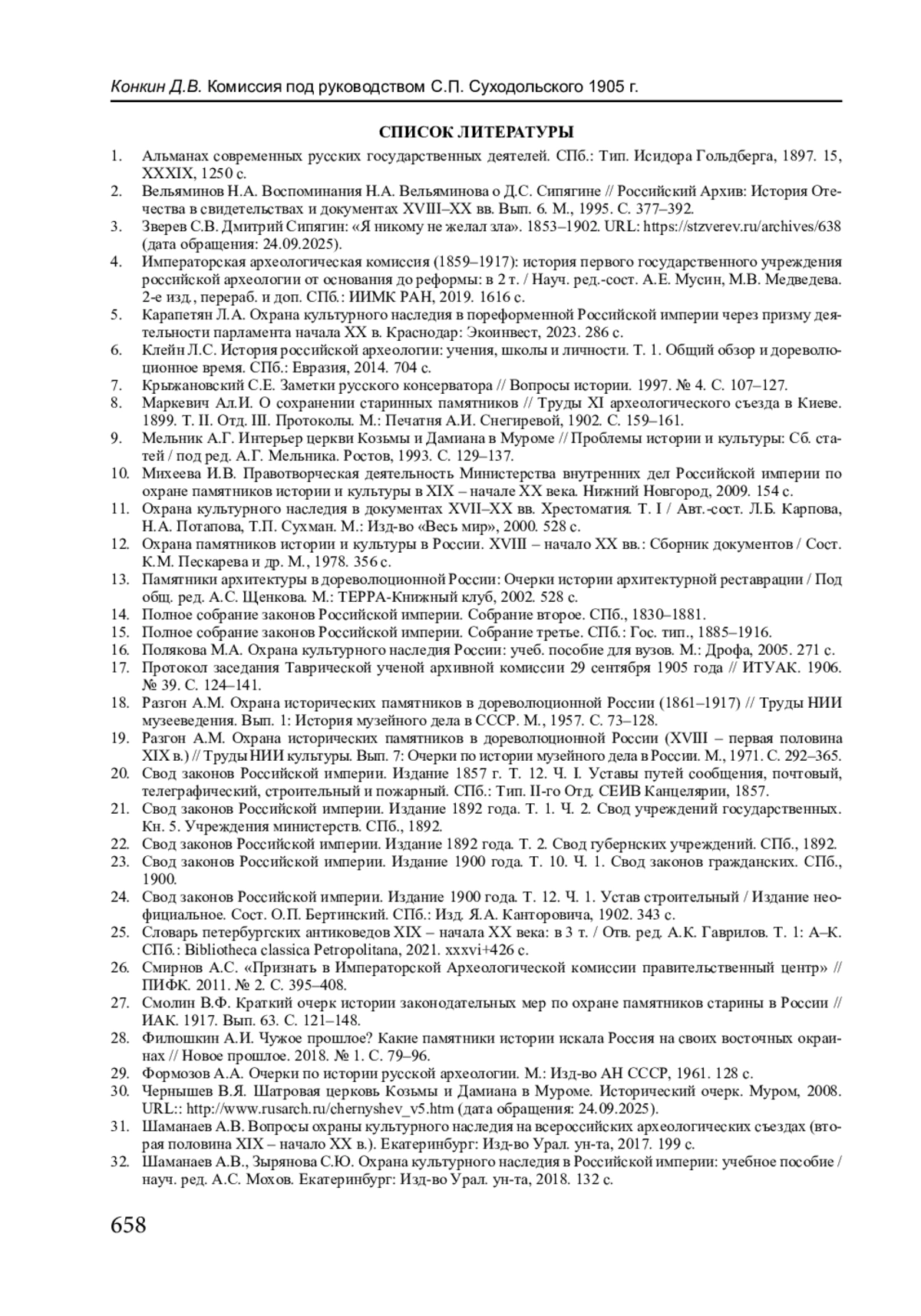 27. Смолин В.Ф. Краткий очерк истории законодательных мер по охране памятников старины в России // Известия Императорской археологической комиссии. 1917. Вып. 63. С. 121-148.