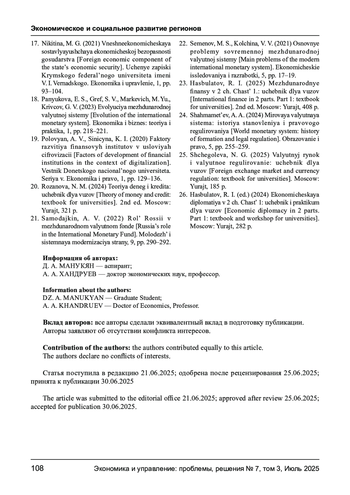 23. Хасбулатов Р. И. Международные финансы. В 2 ч. Ч. 1: учебник для вузов. 2-е изд., перераб. и доп. Москва: Юрайт, 2025. 408 с.