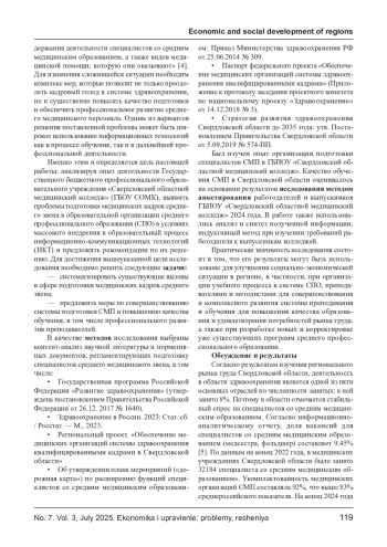 7. Латышова А. А., Купеева И. А., Гажева А. В. Оценка ликвидации дефицита специалистов со средним медицинским образованием в Российской Федерации по итогам 2020 года // Менеджер здравоохранения. 2021. № 7. С. 66-72. DOI: 10.21045/1811-0185-2021-7-66-72 EDN: VQOZEF
