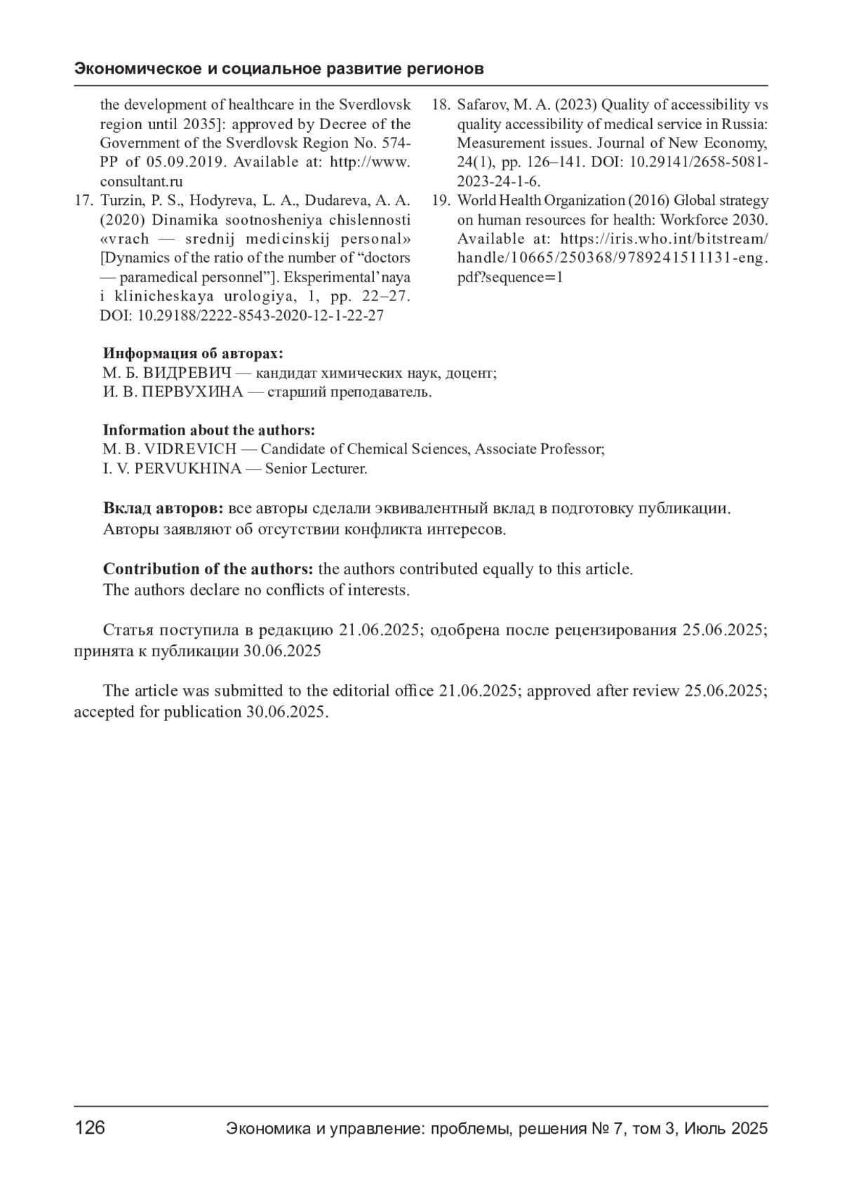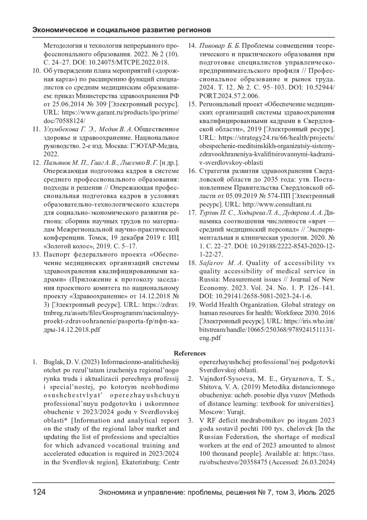 18. Safarov M. A. Quality of accessibility vs quality accessibility of medical service in Russia: Measurement issues // Journal of New Economy. 2023. Vol. 24. No. 1. P. 126-141. DOI: 10.29141/2658-5081-2023-24-1-6 EDN: VJTWFU