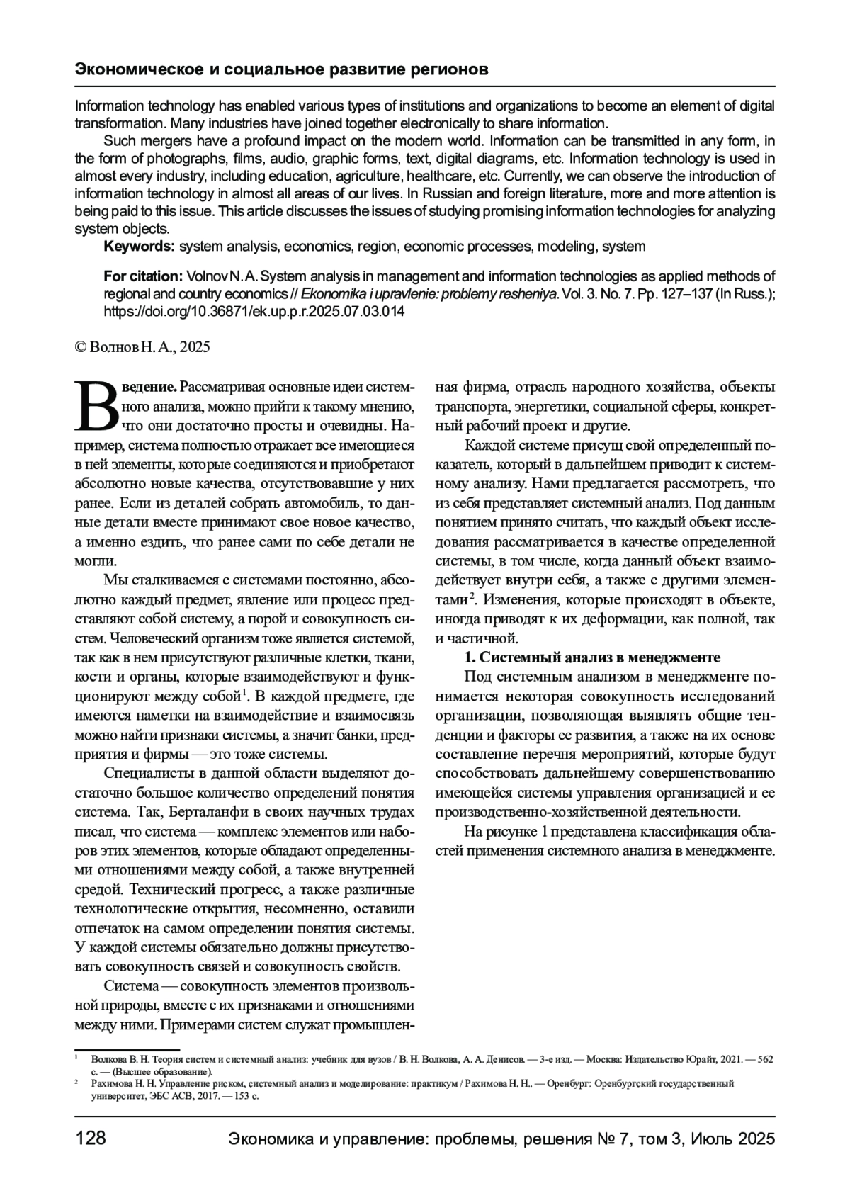 2. Волкова В. Н. Теория систем и системный анализ: учебник для вузов / В. Н. Волкова, А. А. Денисов. - 3-е изд. - Москва: Издательство Юрайт, 2021. - 562 с. - (Высшее образование).