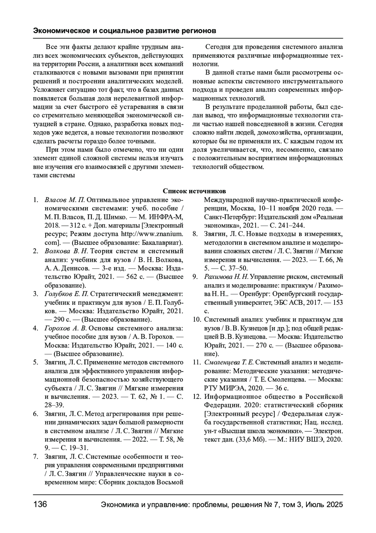 6. Звягин, Л. С. Метод агрегирования при решении динамических задач большой размерности в системном анализе / Л. С. Звягин // Мягкие измерения и вычисления. - 2022. - Т. 58, № 9. - С. 19-31. EDN: BXSKFQ