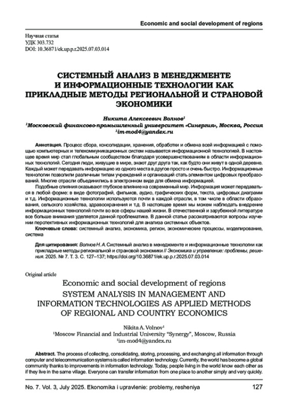Процесс сбора, консолидации, хранения, обработки и обмена всей информацией с помощью компьютерных и телекоммуникационных систем называется информационной технологией. В настоящее время мир стал глобальным сообществом благодаря усовершенствованиям в области информационных технологий. Сегодня люди, живущие в мире, знают друг друга так, как будто они живут в одной деревне. Каждый может передавать информацию из одного места в другое просто и очень быстро. Информационные технологии позволили различным типам учреждений и организаций стать элементом цифровых преобразований. Многие отрасли объединились в электронном виде для обмена информацией. Подобные слияния оказывают глубокое влияние на современный мир. Информация может передаваться в любой форме: в виде фотографий, фильмов, аудио, графических форм, текста, цифровых диаграмм и т. д. Информационные технологии используются почти в каждой отрасли, в том числе в области образования, сельского хозяйства, здравоохранения и т. д. В настоящее время мы можем наблюдать внедрение информационных технологий почти во все сферы нашей жизни. В отечественной и зарубежной литературе все больше внимания уделяется данной проблематике. В данной статье рассматриваются вопросы изучении перспективных информационных технологий для анализа системных объектов.