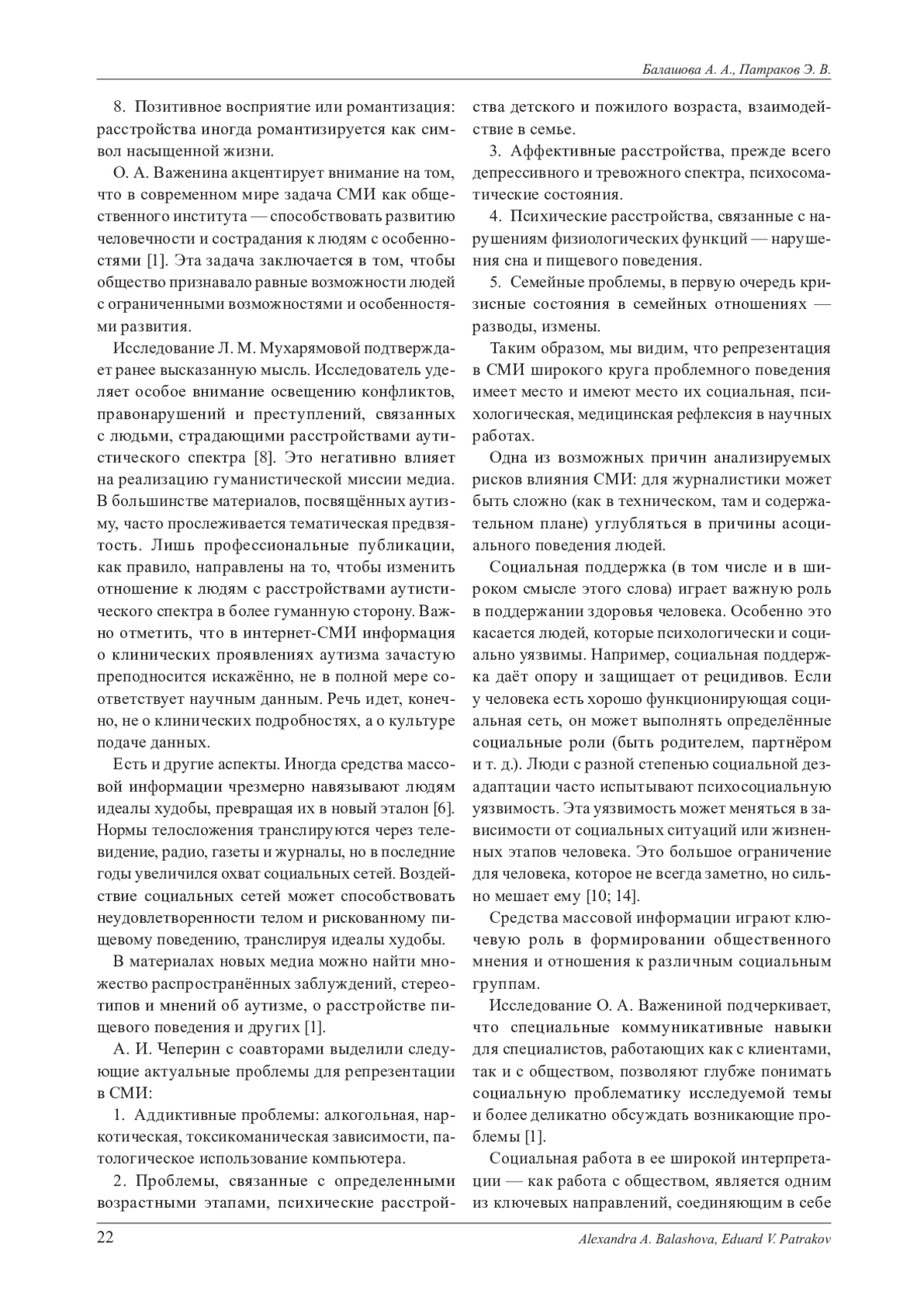 8. Мухарямова Л. М., Савельева Ж. В., Кузнецова И. Б., Гарапшина Л. Р. Аутизм в России: противоречивое поле диагностики и статистики // Журнал исследований социальной политики. 2021. Т. 19, № 3. С. 437-450. EDN: WJGXIJ