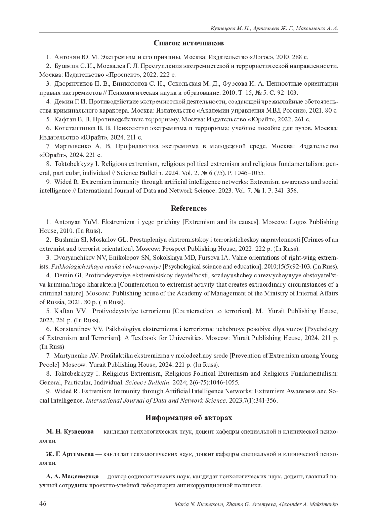 2. Бушмин С. И., Москалев Г. Л. Преступления экстремистской и террористической направленности. Москва: Издательство “Проспект”, 2022. 222 с. EDN: JYHFOV