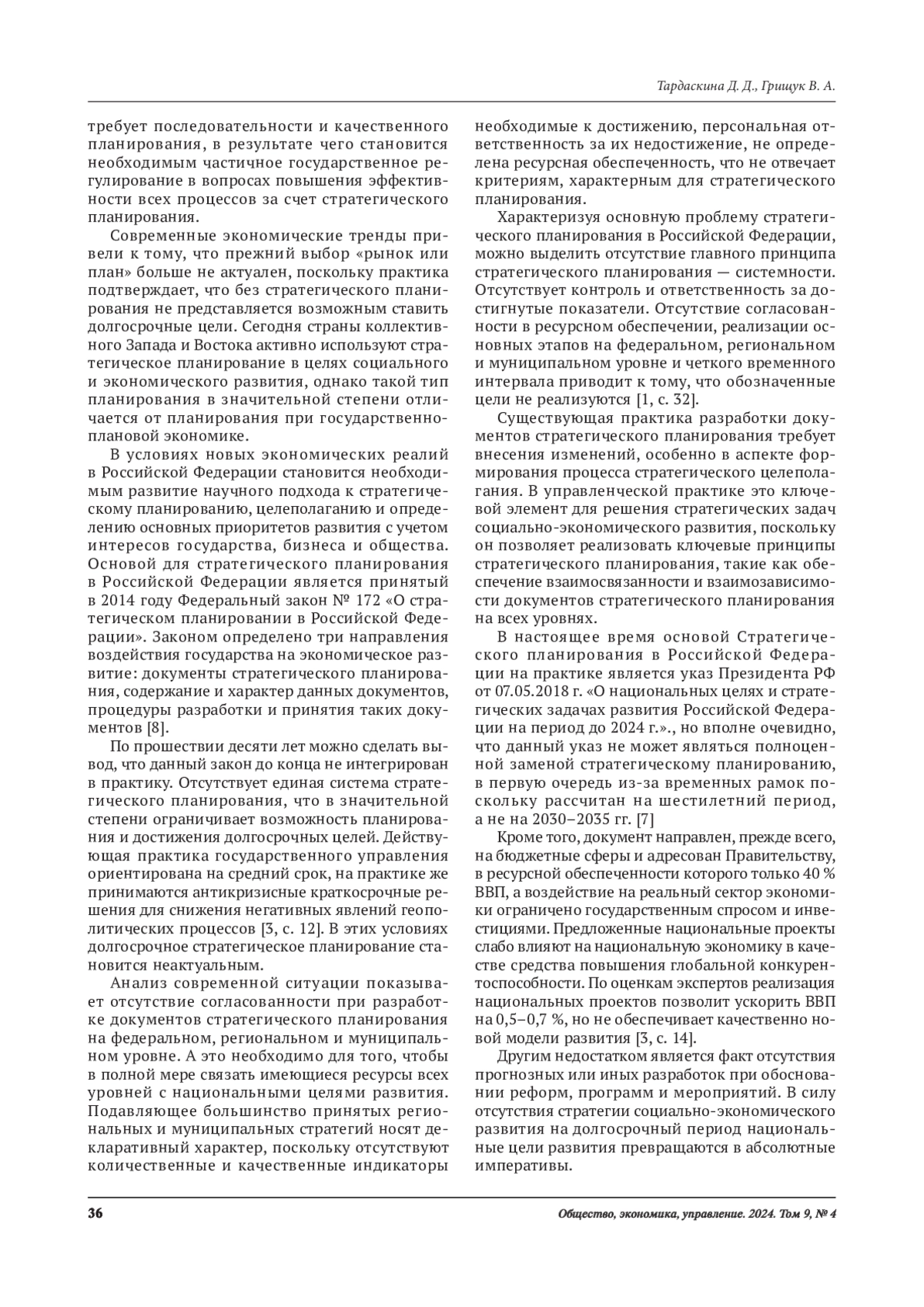 2. Габриелян А. С., Грищук, В. А. Стратегическое планирование социально-экономического развития муниципального образования // Общество. Экономика. Управление. 2021. Т. 6, № 2. С. 73-77. EDN: WDEWBS