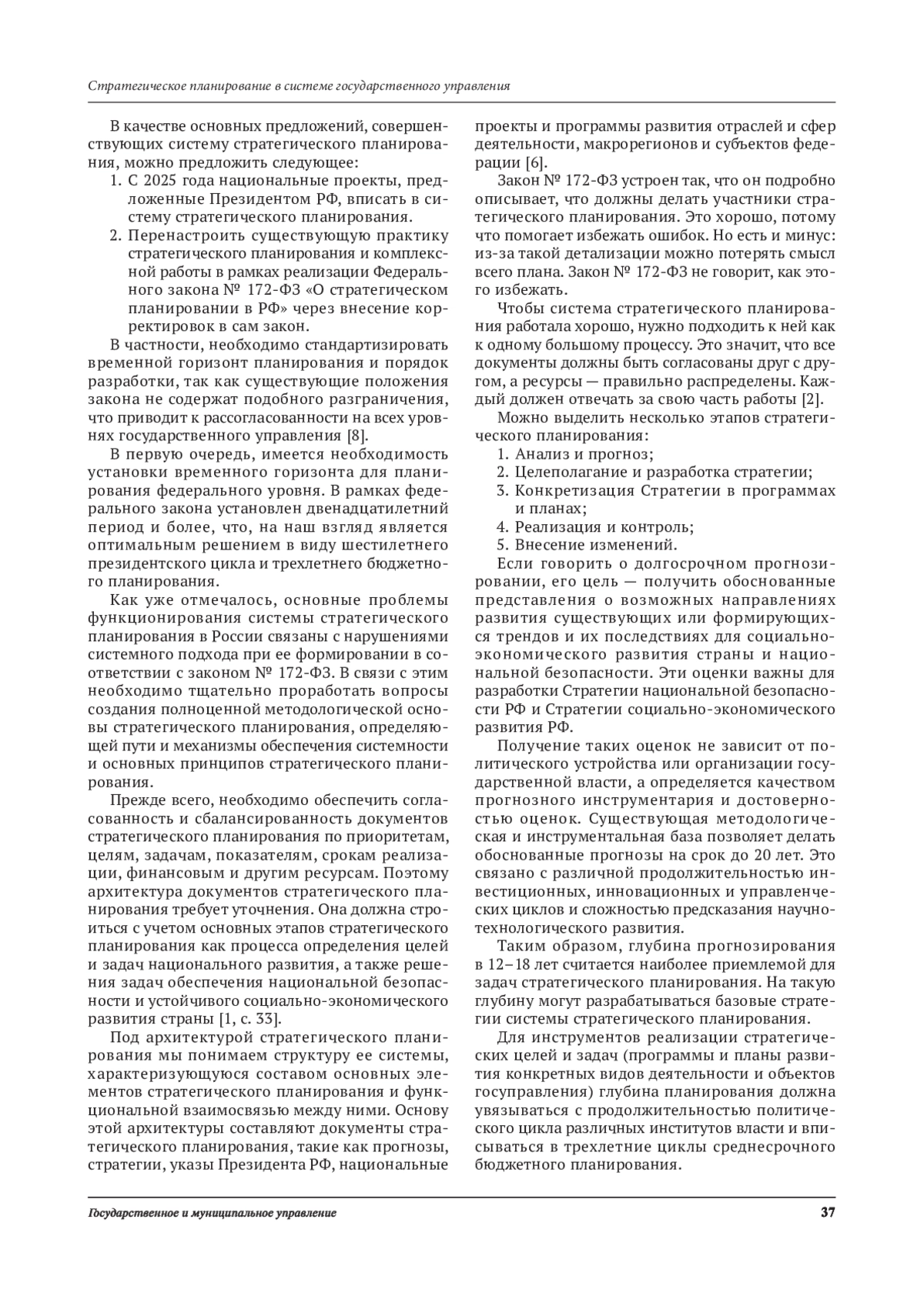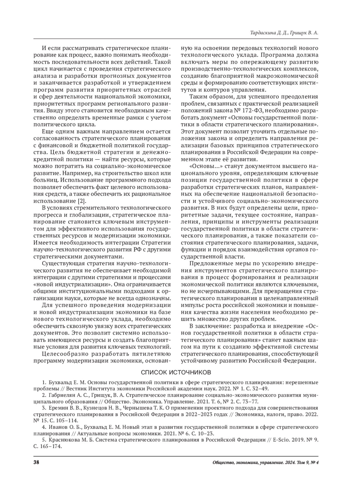 4. Иванов О. Б., Бухвальд Е. М. Новый этап в развитии государственной политики в сфере стратегического планирования // Актуальные вопросы экономики. 2021. № 6. С. 10-23.