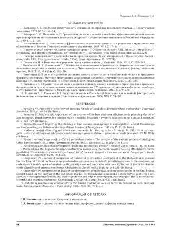 1. Кольцова А. В. Проблемы эффективности аукционов по продаже земельных участков // Теоретическая экономика. 2019. № 5. С. 66-74. EDN: TCQDQS