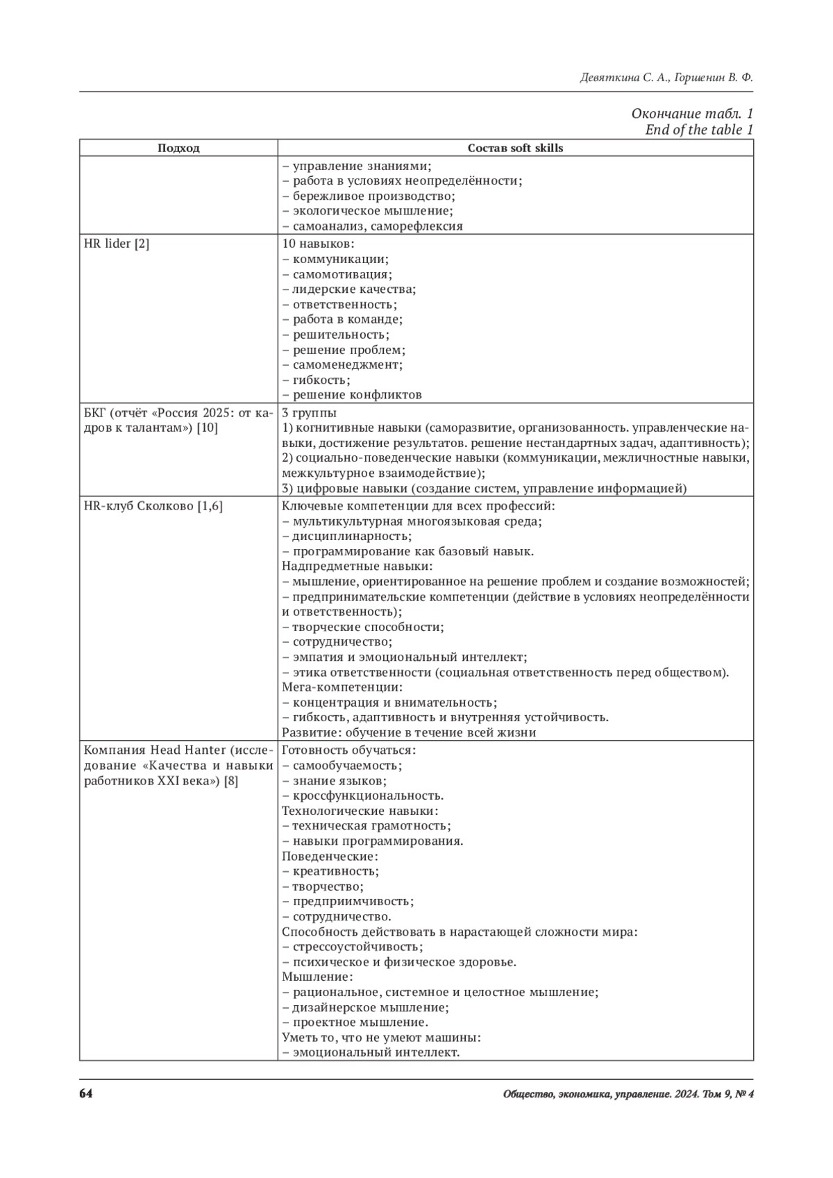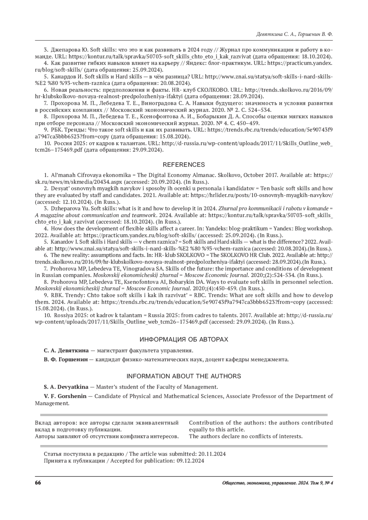 8. Прохорова М. П., Лебедева Т. Е., Ксенофонтова А. И., Бобарыкин Д. А. Способы оценки мягких навыков при отборе персонала // Московский экономический журнал. 2020. № 4. С. 450-459. EDN: CQFPAA