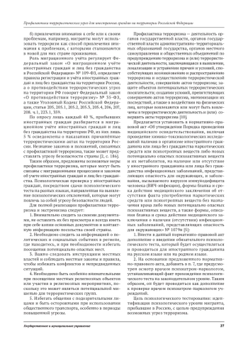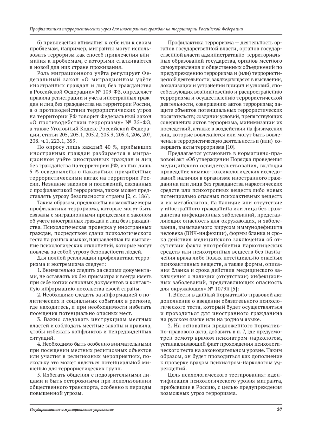 Статья: ПРОФИЛАКТИКА ТЕРРОРИСТИЧЕСКИХ УГРОЗ ДЛЯ ИНОСТРАННЫХ ГРАЖДАН НА ТЕРРИТОРИИ РОССИЙСКОЙ ФЕДЕРАЦИИ (2024)