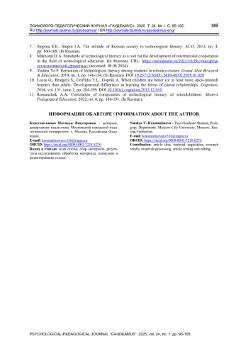 11. Романчук А.А. Корреляция компонентов технологической грамотности школьников // Современное педагогическое образование. 2022. № 4. С. 186-191.